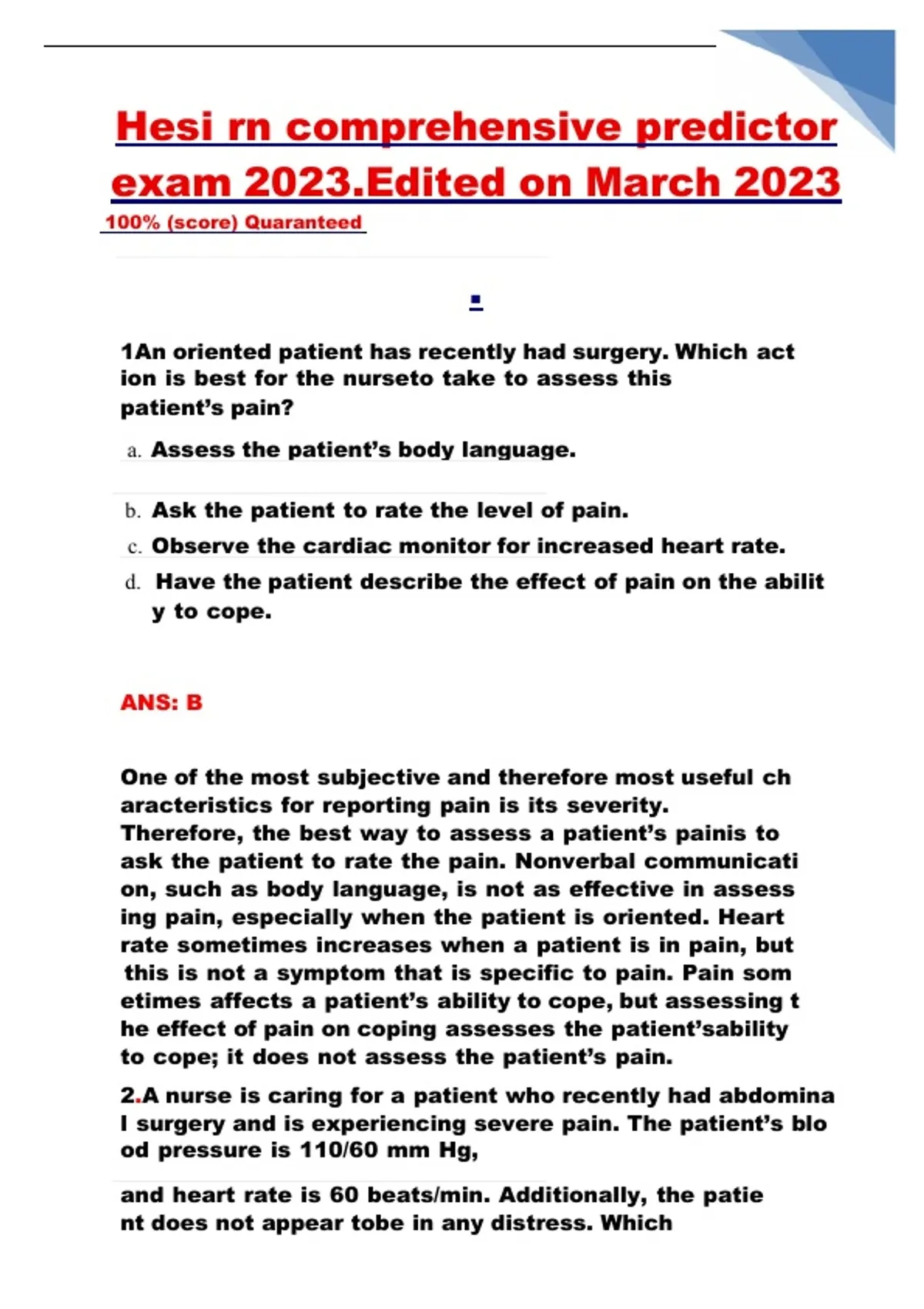 Hesi rn comprehensive predictor exam 2023.Edited on March 2023 100% (score) Quaranteed.