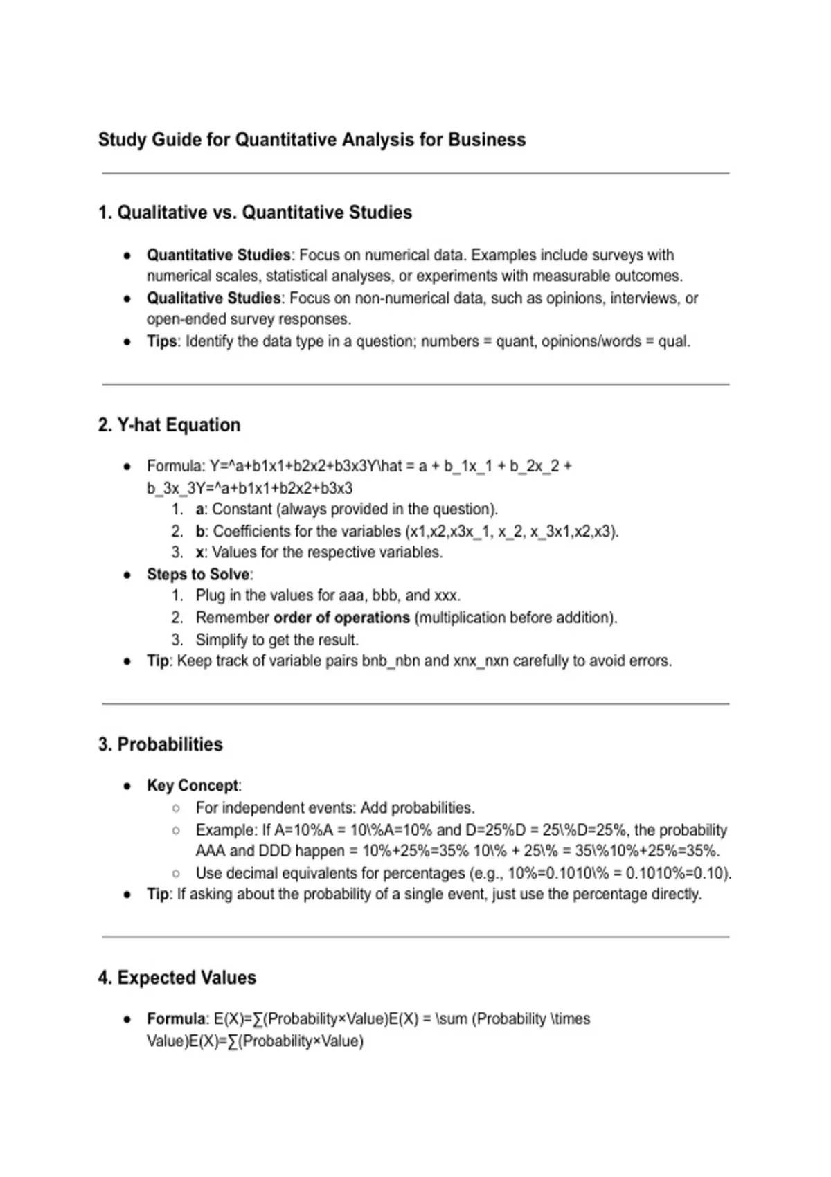 Study Guide for Quantitative Analysis for Business