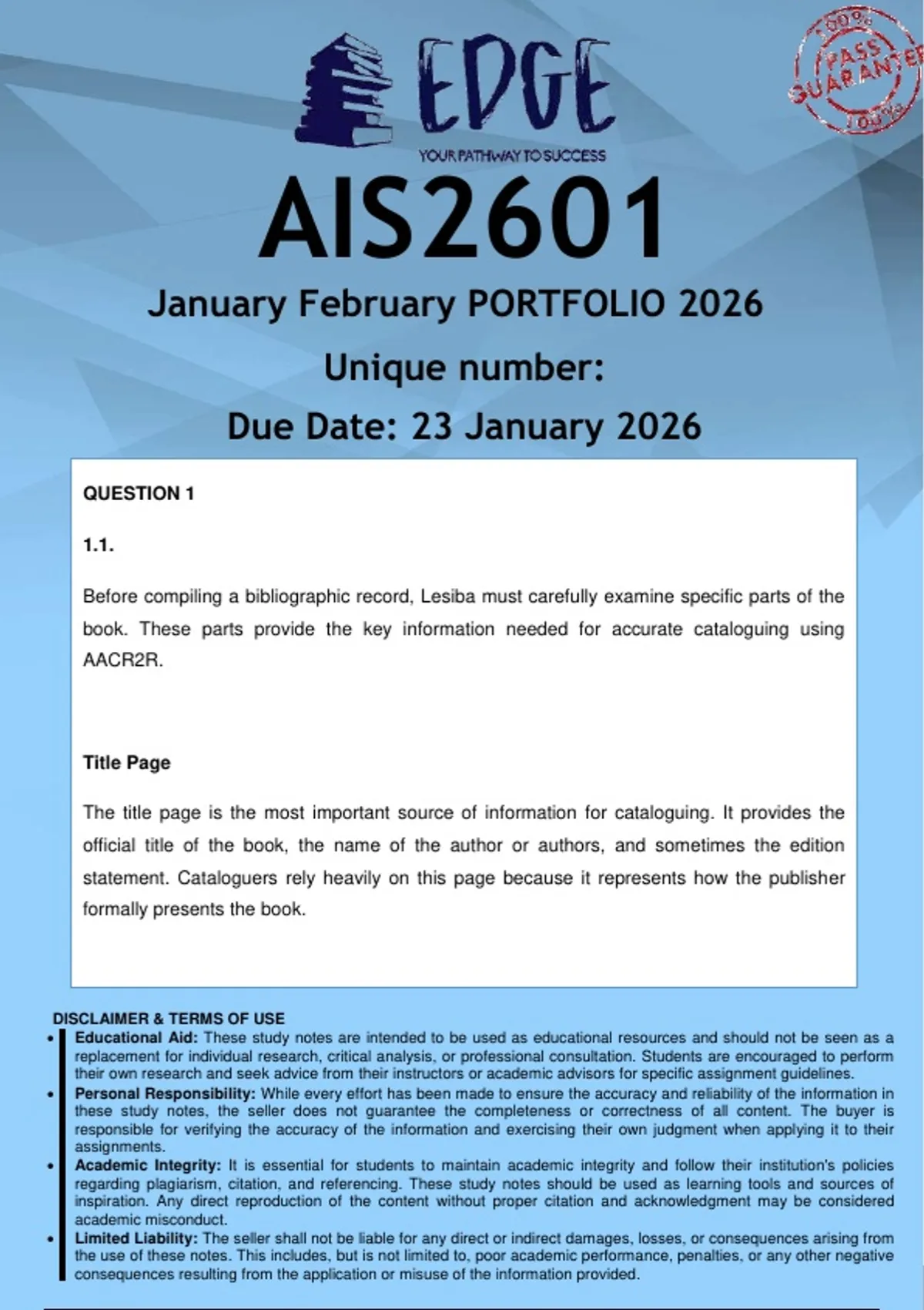 Due Date: 23 January 2026