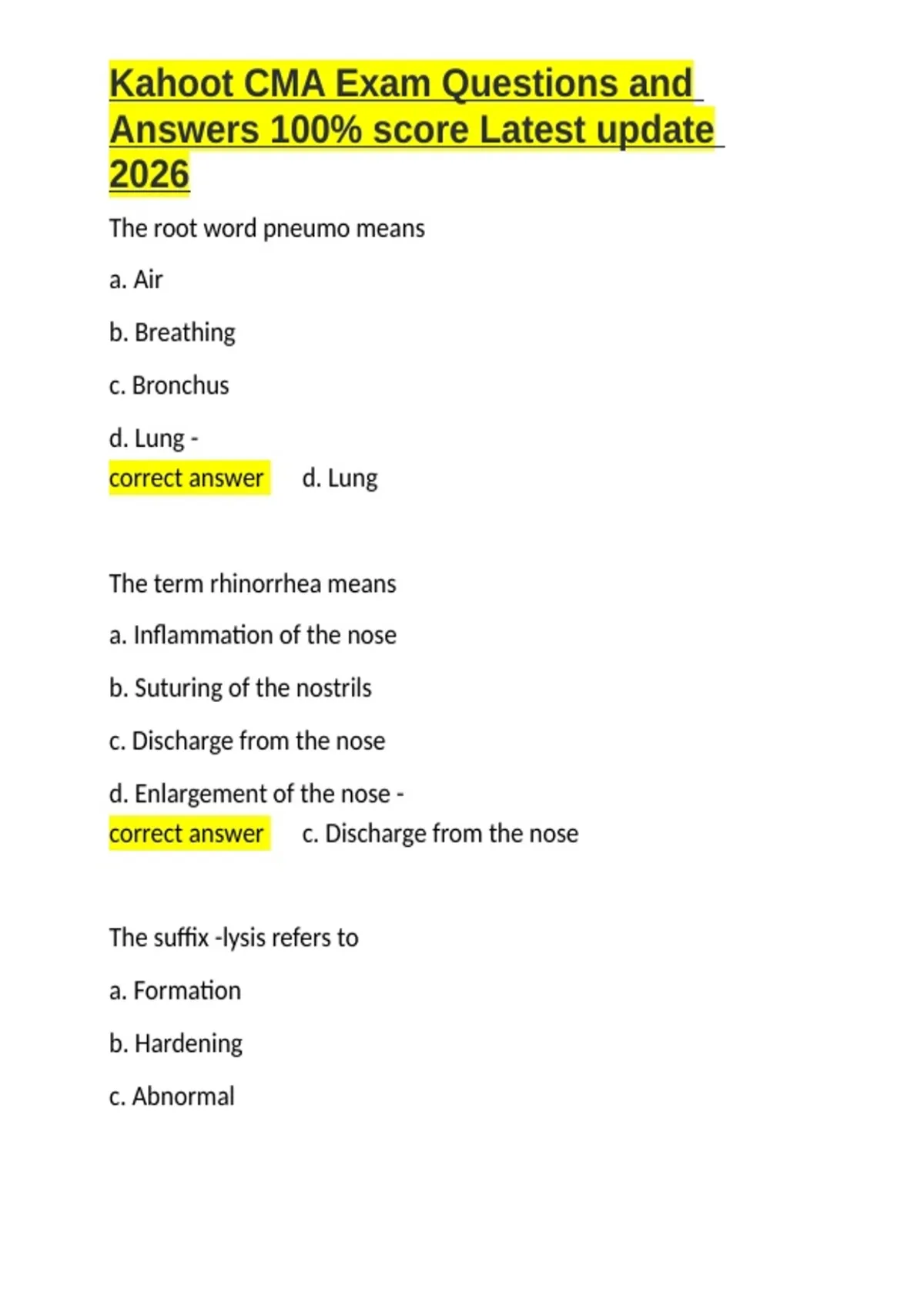 ,Kahoot CMA Exam Questions and
