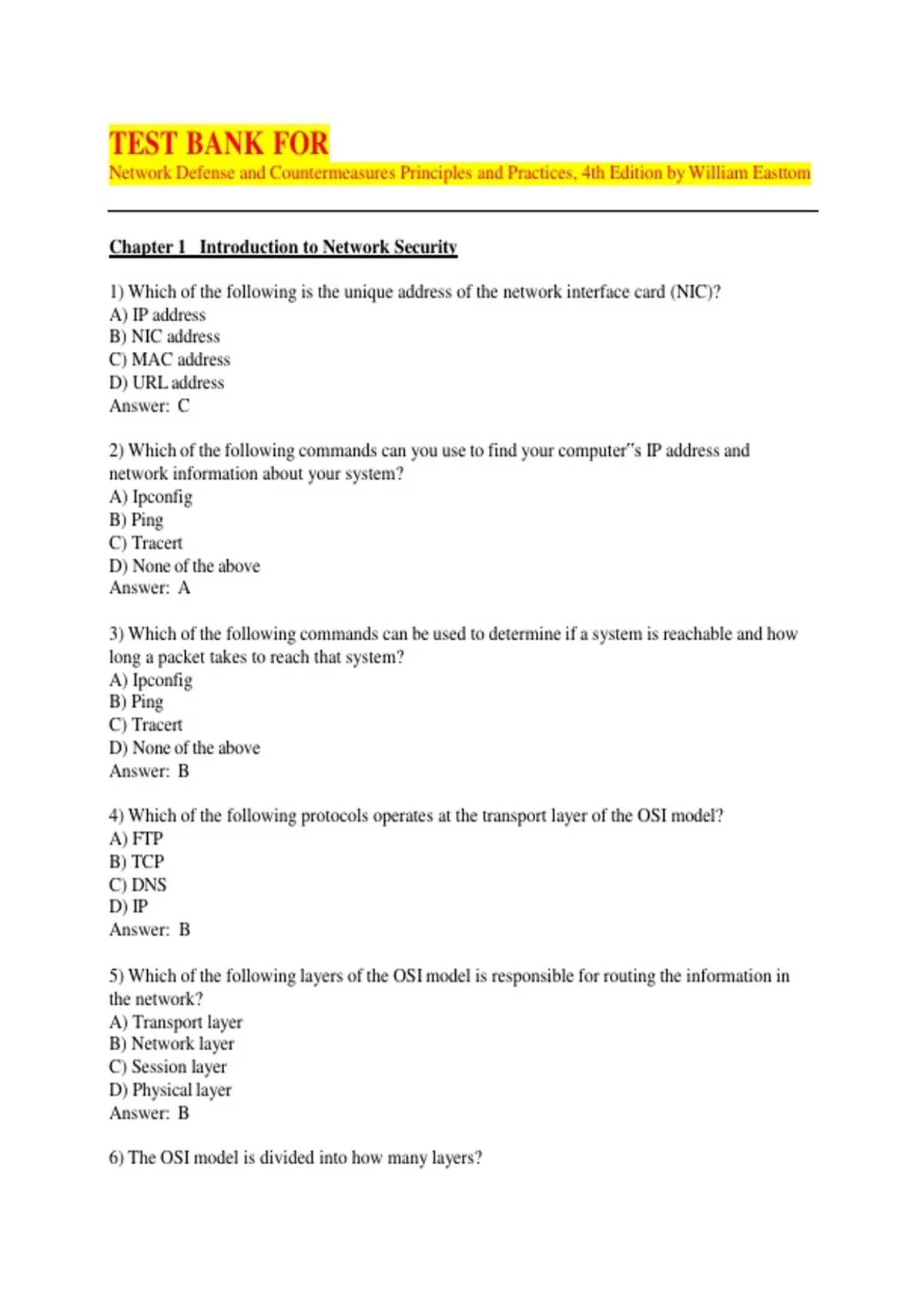 TEST BANK FOR Network Defense and Countermeasures Principles and Practices, 4th Edition by William Easttom