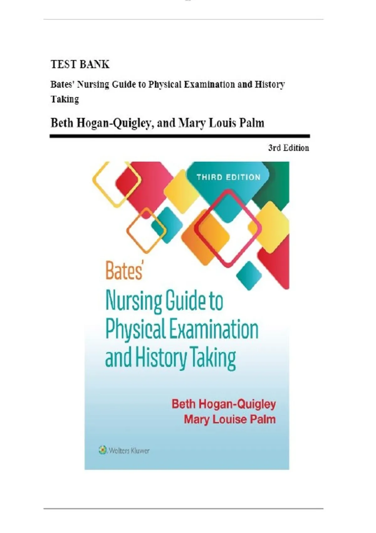 Bates' Nursing Guide to Physical Examination and History Taking / Edition 3 Testbank