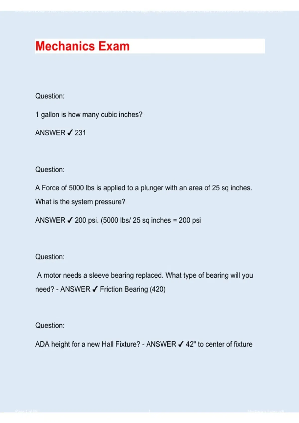 , Mechanics Exam - 2026 | Verified Answers & Complete Study Guide forPage