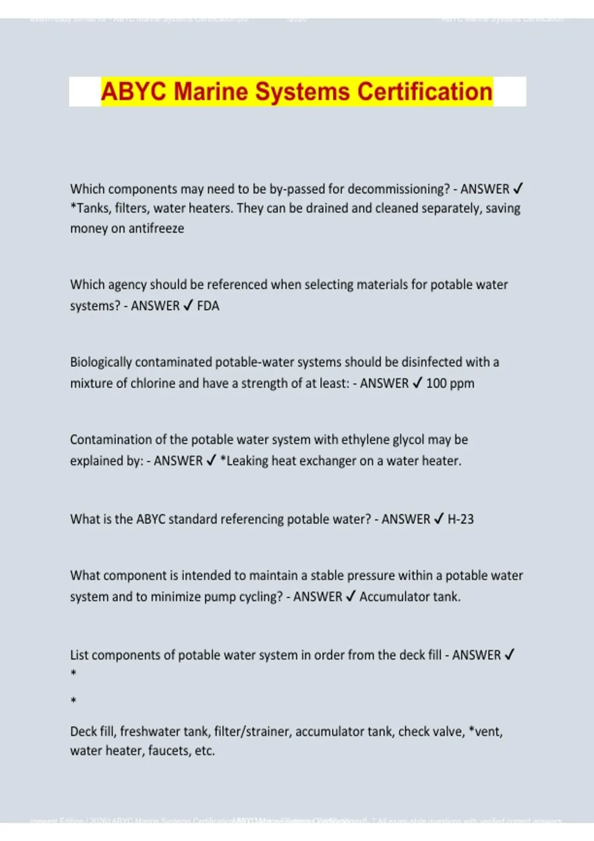 , exam-ready format for - ABYC Marine Systems Certification.pdf /2026 ABYC Marine Systems Certification