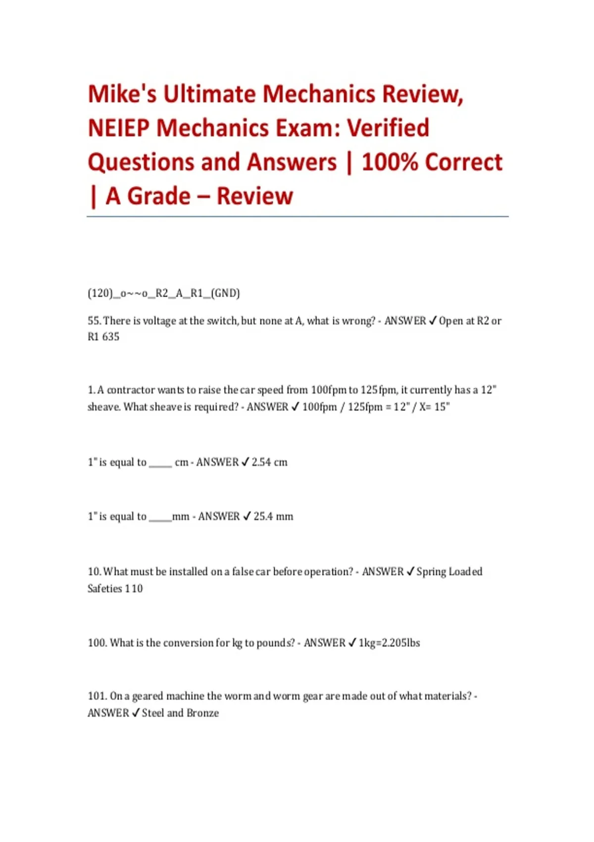 NEIEP Mechanics Exam: Verified