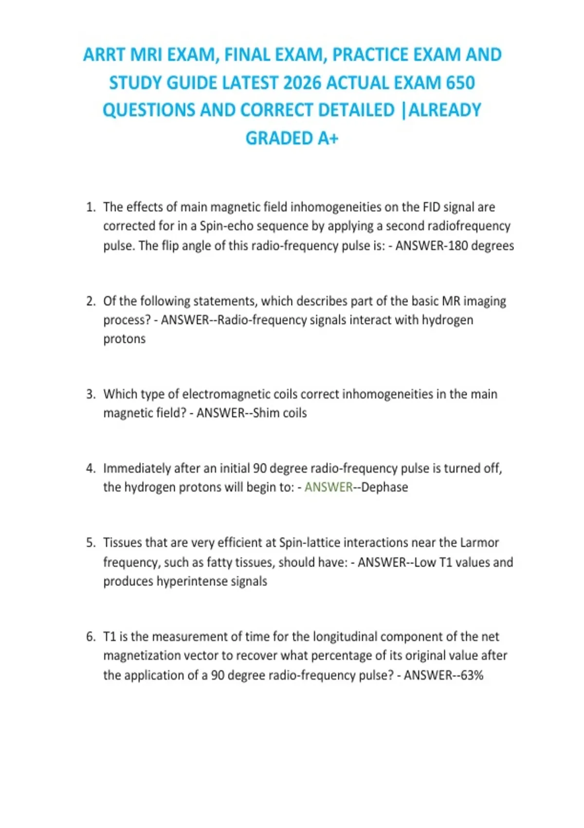 ,ARRT MRI EXAM, FINAL EXAM, PRACTICE EXAM AND