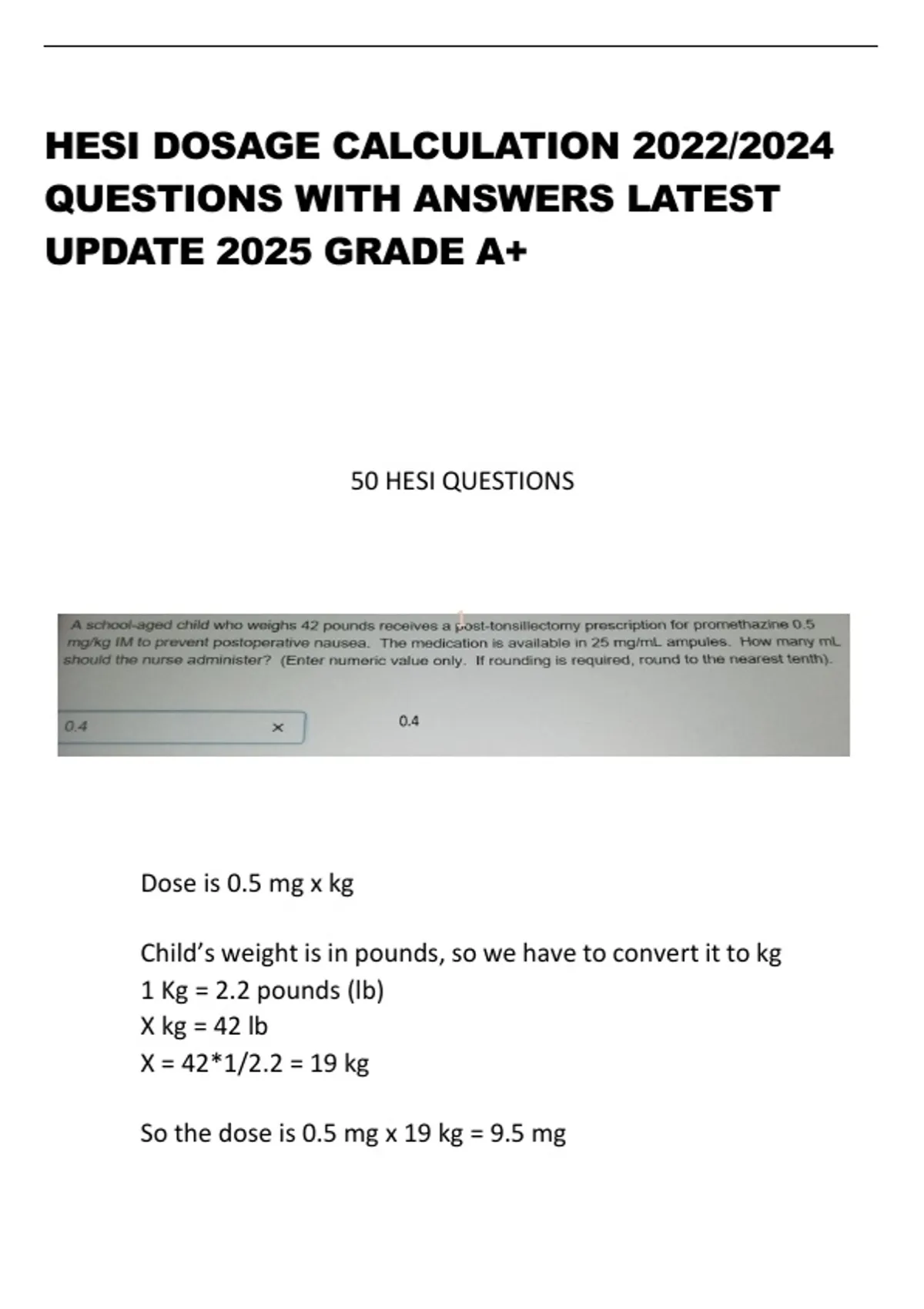 Page 1 of 49 HESI DOSAGE CALCULATION 2022-2024