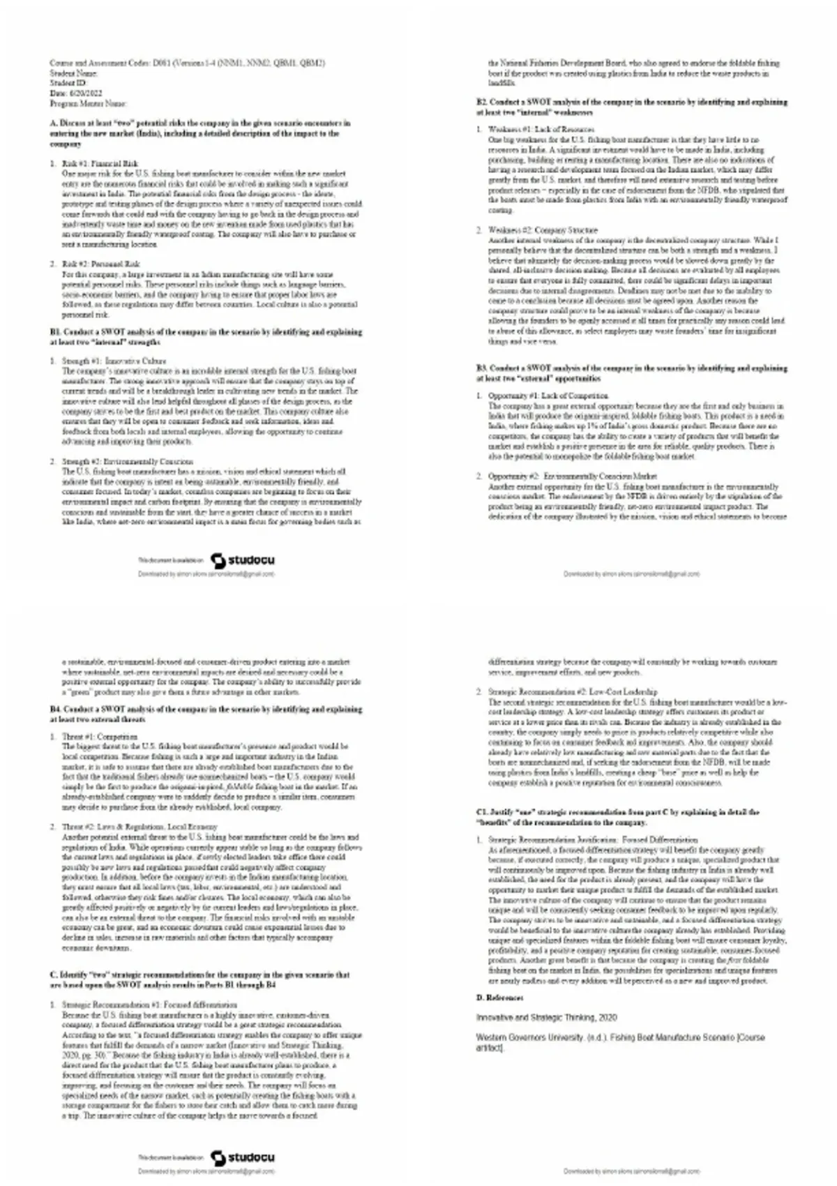 Comprehensive guide for D081 Task 2, focusing on analyzing market entry risks and strategies in India. Covers political, economic, legal, and cultural risks, market entry modes, competitive strategies, and mitigation approaches. Ideal for students preparing assignments, quizzes, test banks, and course evaluations for QBM1.