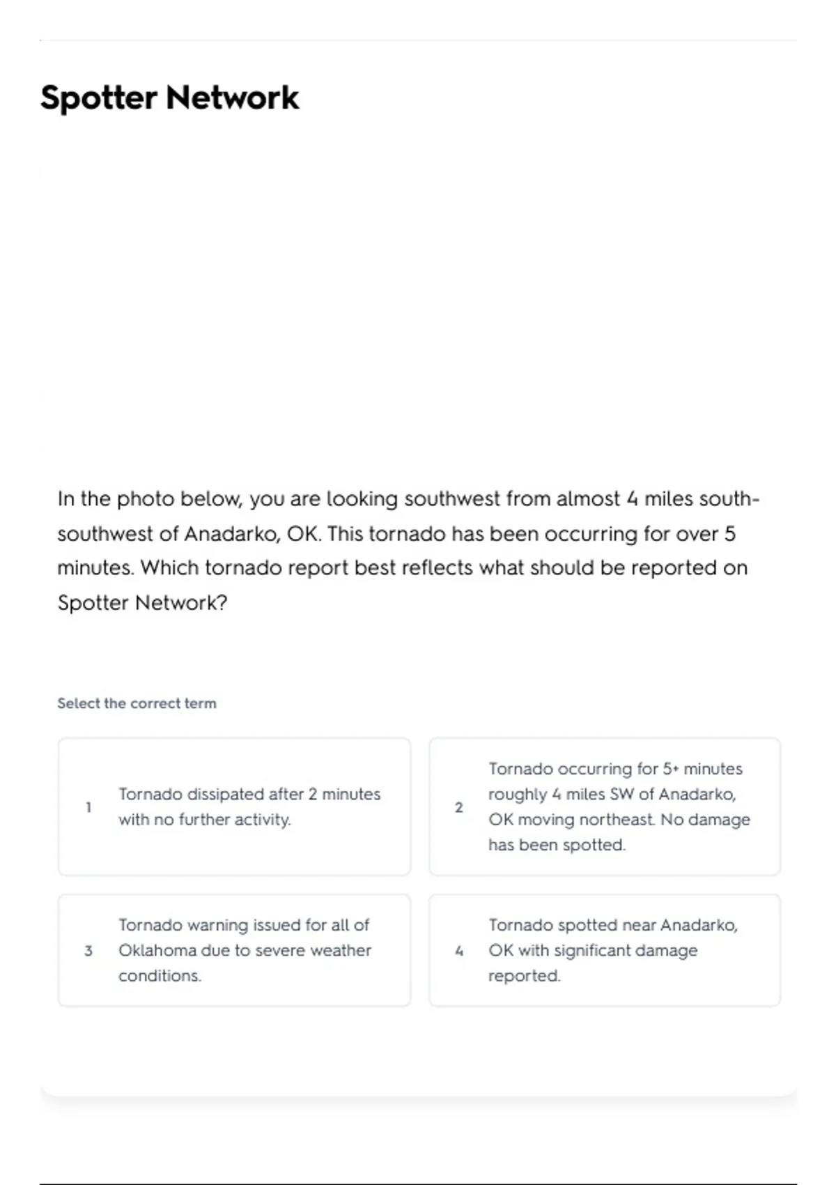 minutes. Which tornado report best reflects what should be reported on
