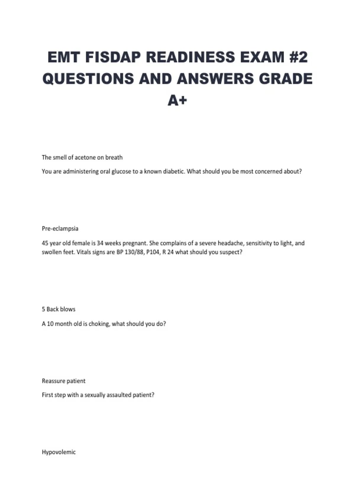 , 2026: 100% correct -4 EMT FISDAP READINESS EXAM 2 QUESTIONS