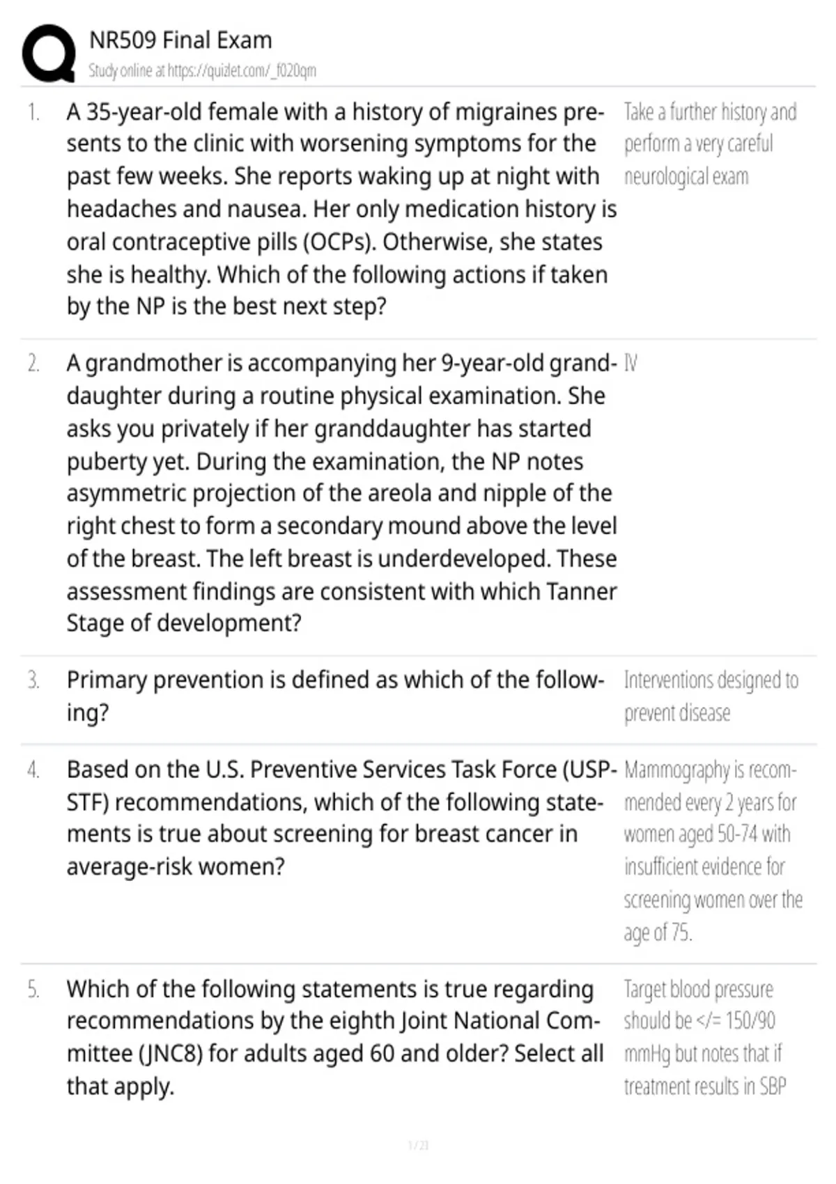 , NR509 Final Exam