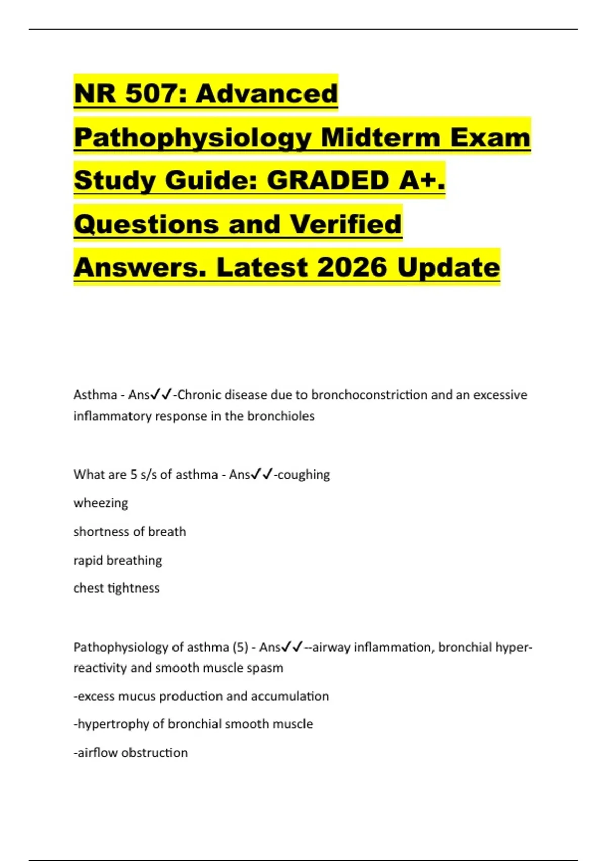 What are 5 s/s of asthma - Ans✔✔-coughing