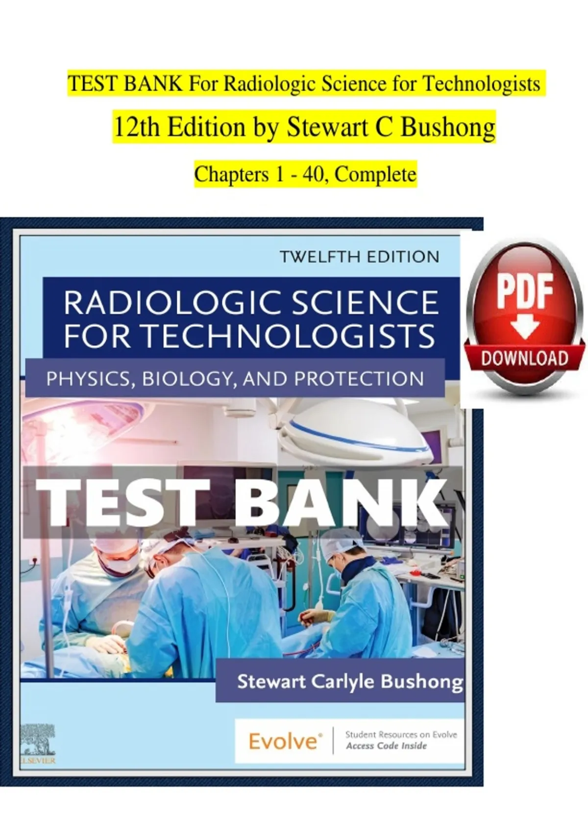 Stay ahead in your radiologic science studies with the Radiologic Science for Technologists (12th Edition) Test Bank by Stewart C. Bushong. This complete resource includes multiple-choice, calculation-based, and application-focused questions covering all 40 chapters, with in-depth coverage of radiation physics, imaging principles, radiographic equipment, image quality, radiation protection, and clinical applications. Ideal for radiologic technology students preparing for exams, certifications, and clinical practice.