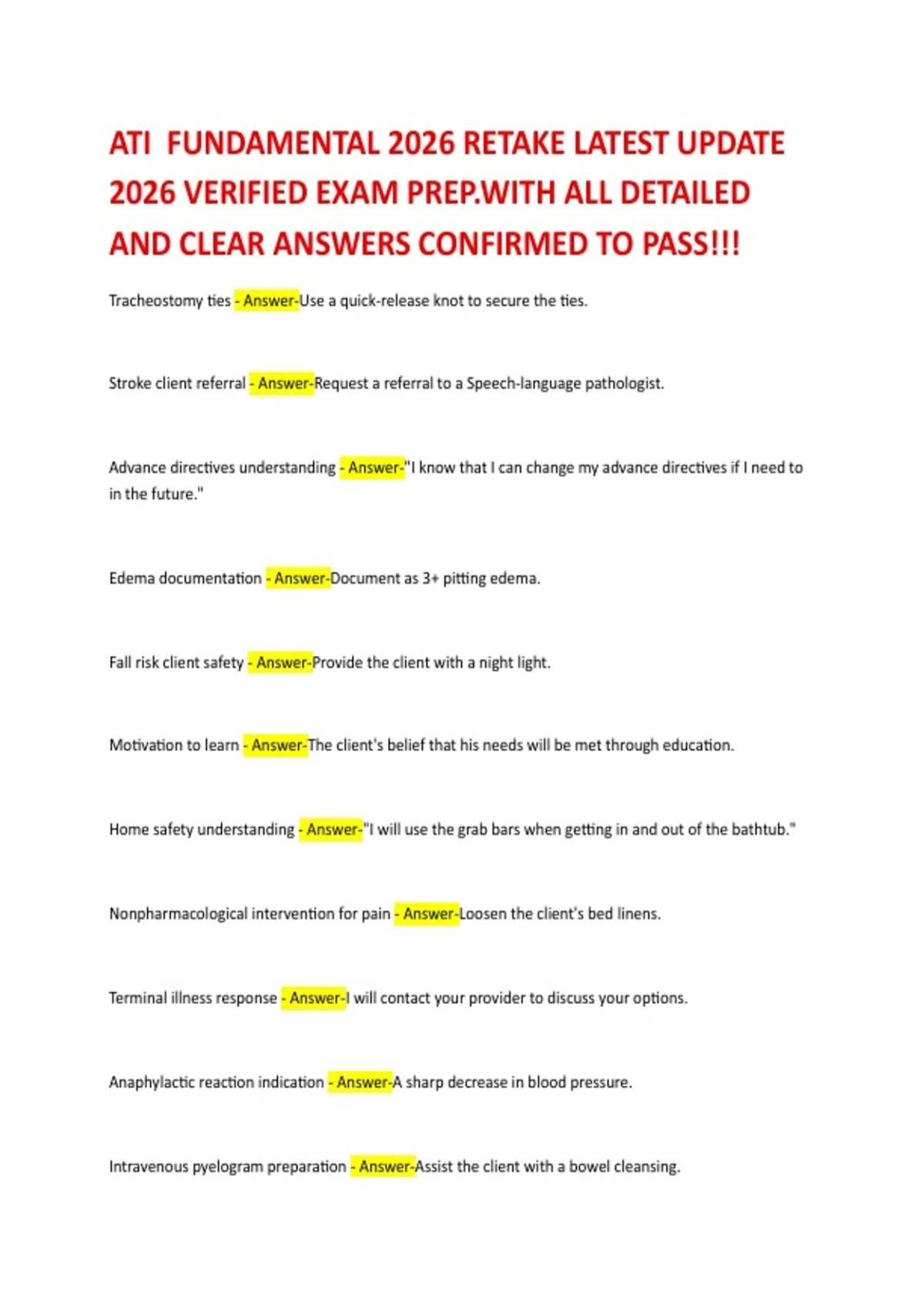 ATI FUNDAMENTAL 2026 RETAKE LATEST UPDATE