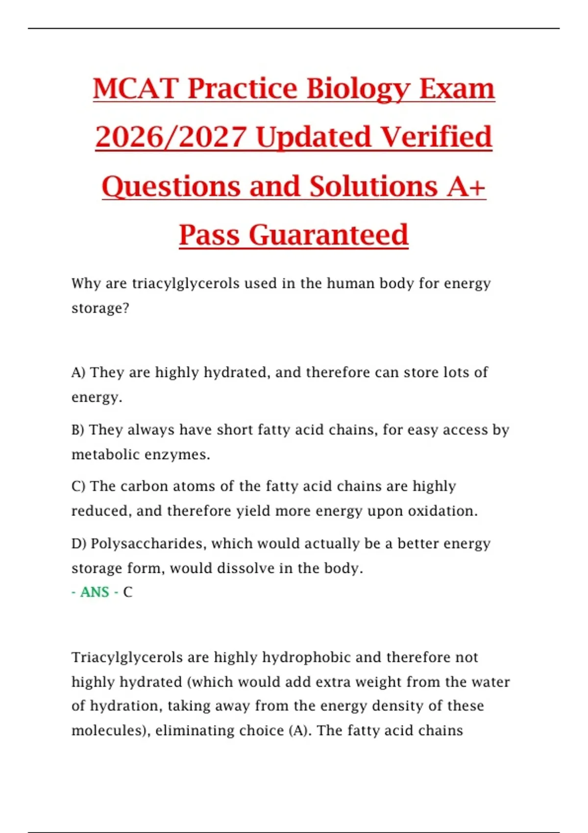 molecules), eliminating choice (A). The fatty acid chains