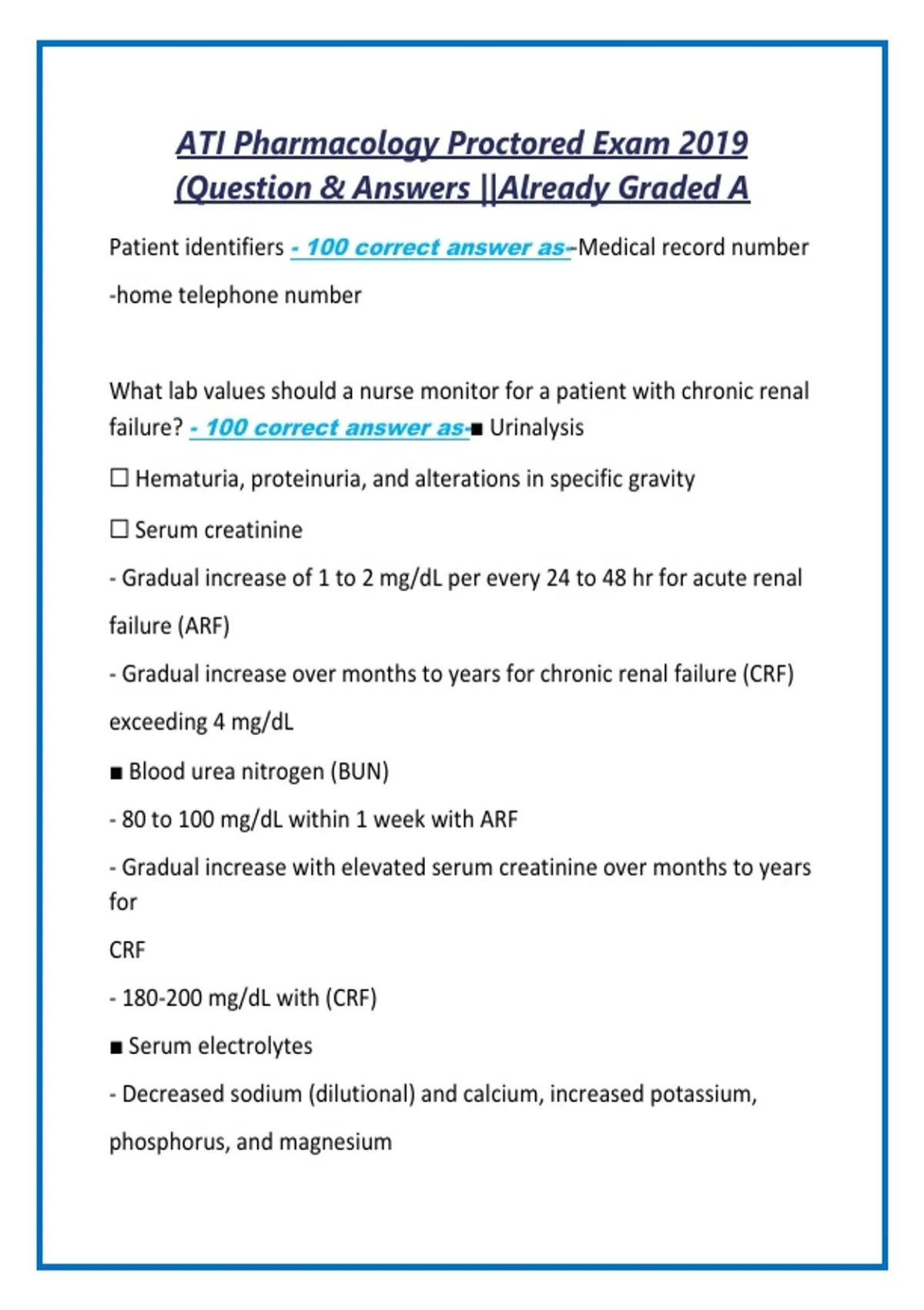 ATI Pharmacology Proctored Exam 2019