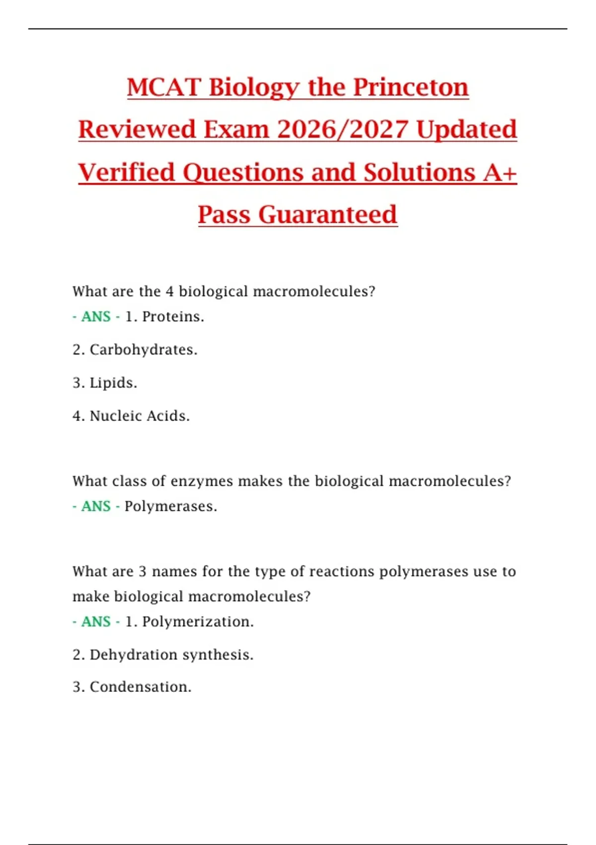 MCAT Biology the Princeton Reviewed Exam 2026/2027 Updated Verified Questions and Solutions A+ Pass Guaranteed