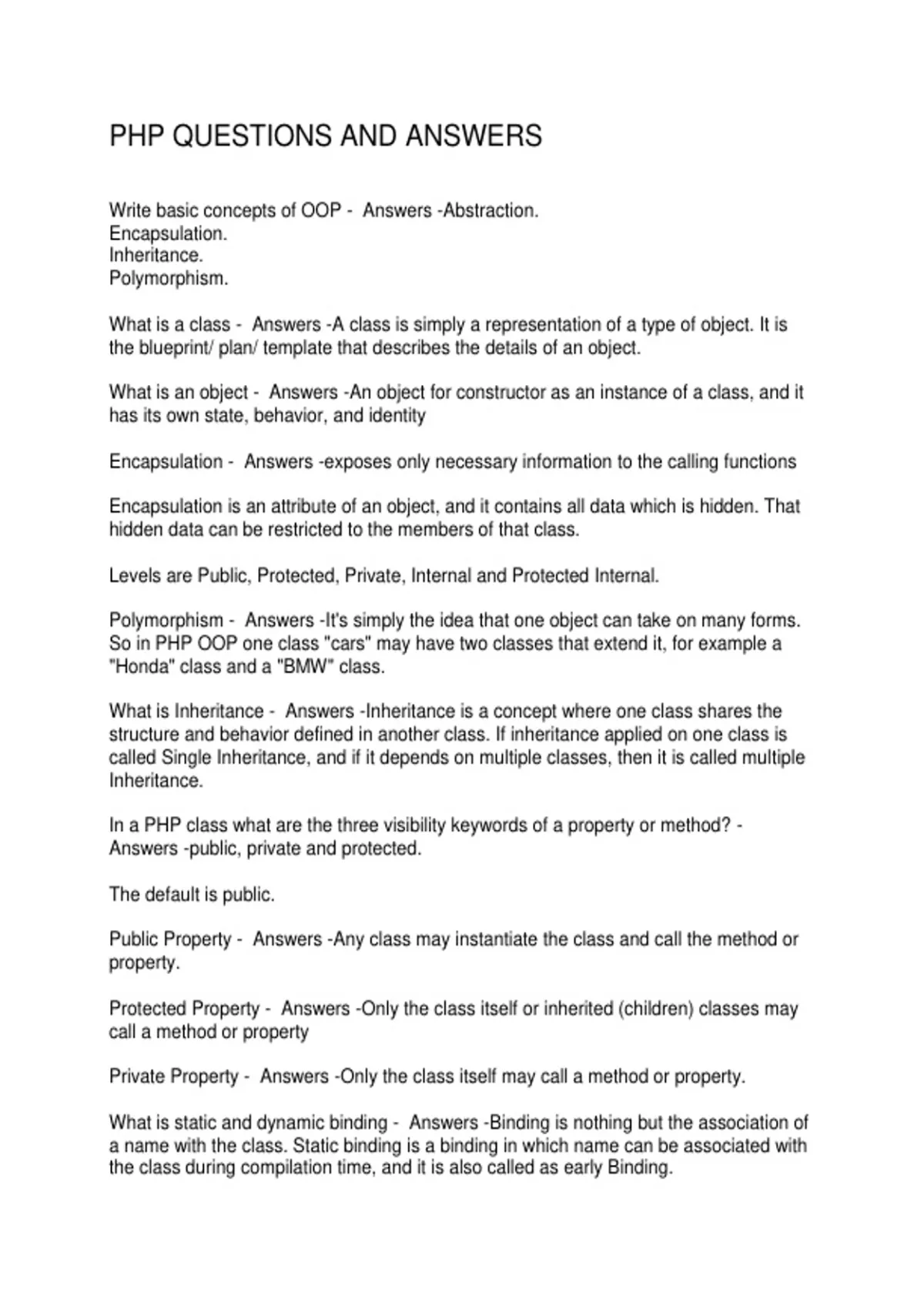 Private Property - Answers -Only the class itself may call a method or property.