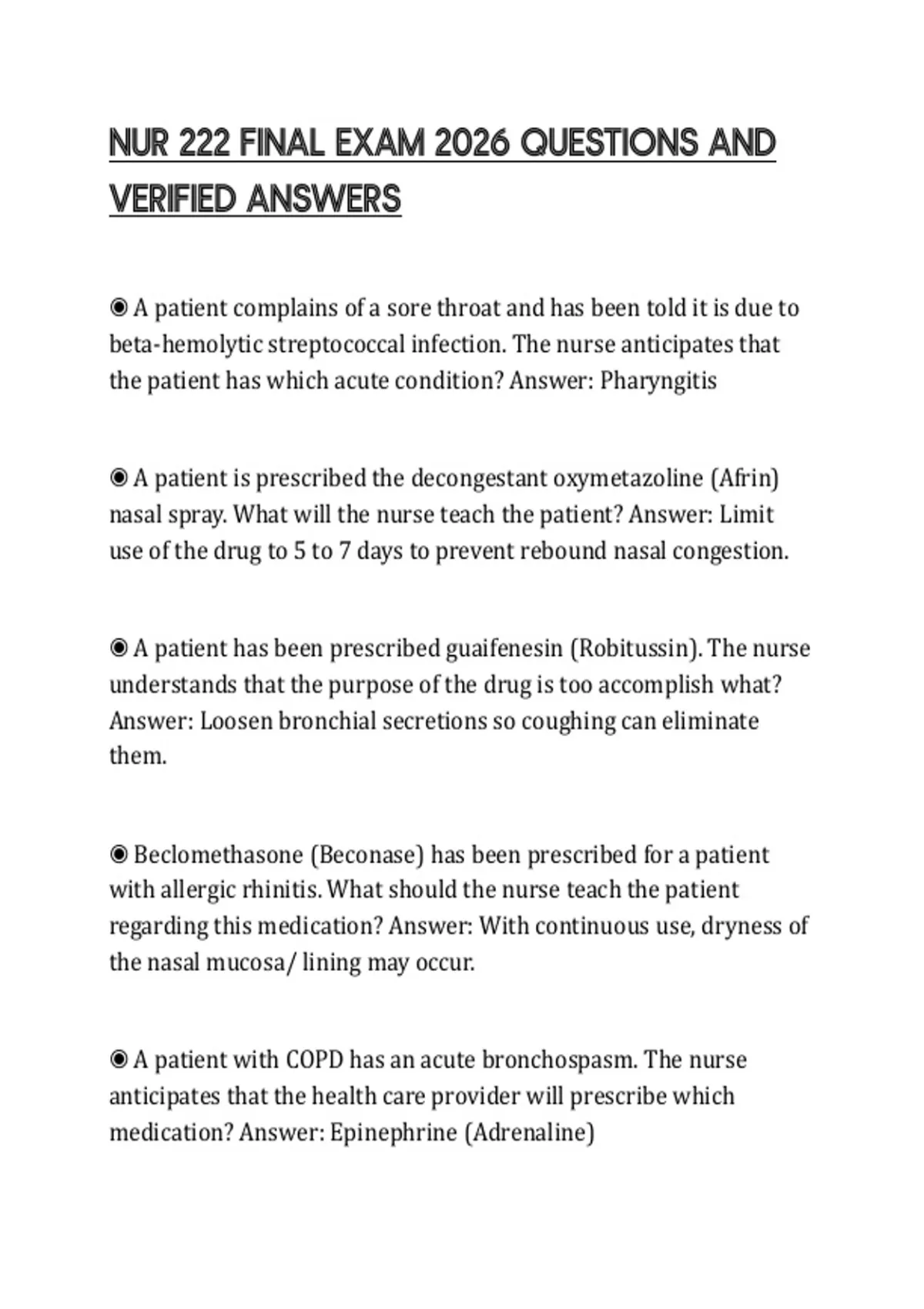 NUR 222 FINAL EXAM 2026 QUESTIONS AND