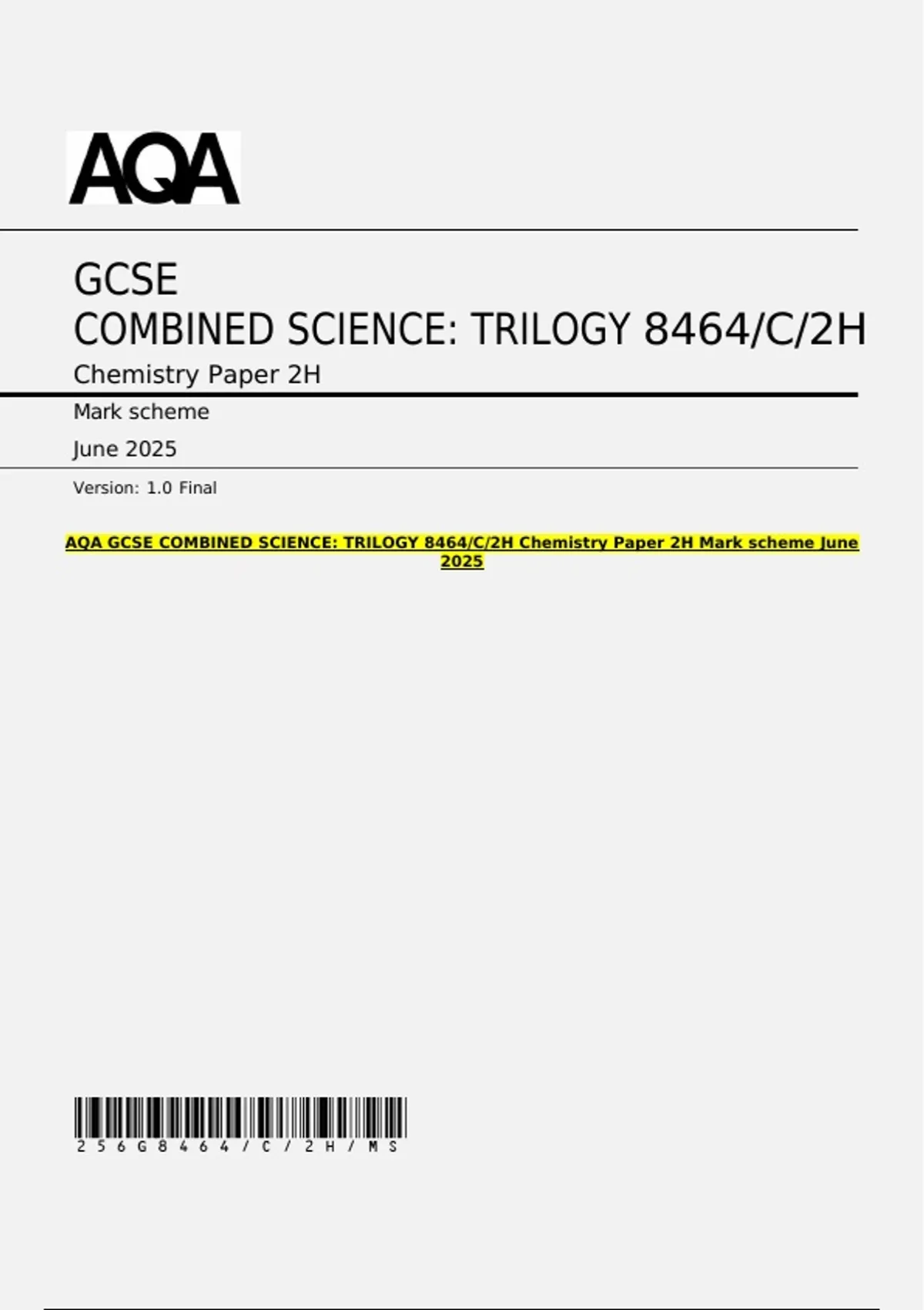 AQA GCSE COMBINED SCIENCE: TRILOGY 8464/C/2H Chemistry Paper 2H Mark scheme June 2025