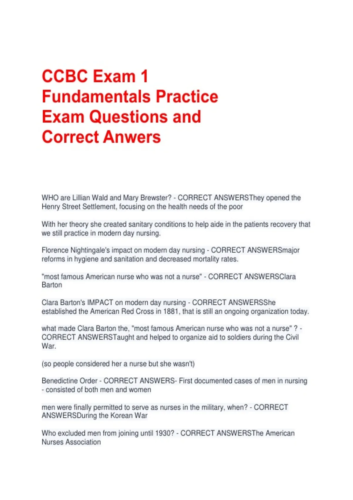 CCBC Exam 1 Fundamentals Practice Exam Questions and Correct Anwers