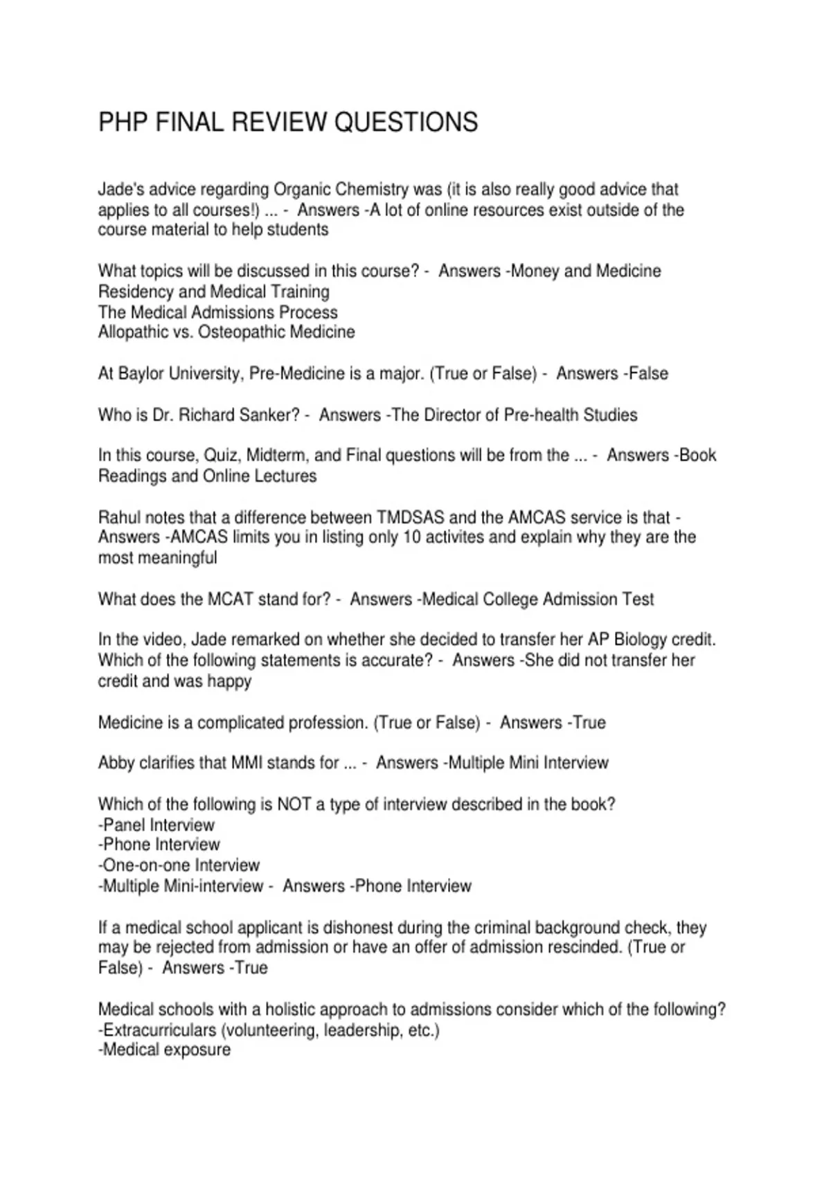 PHP EXAM 1 QUESTIONS & ANSWERS