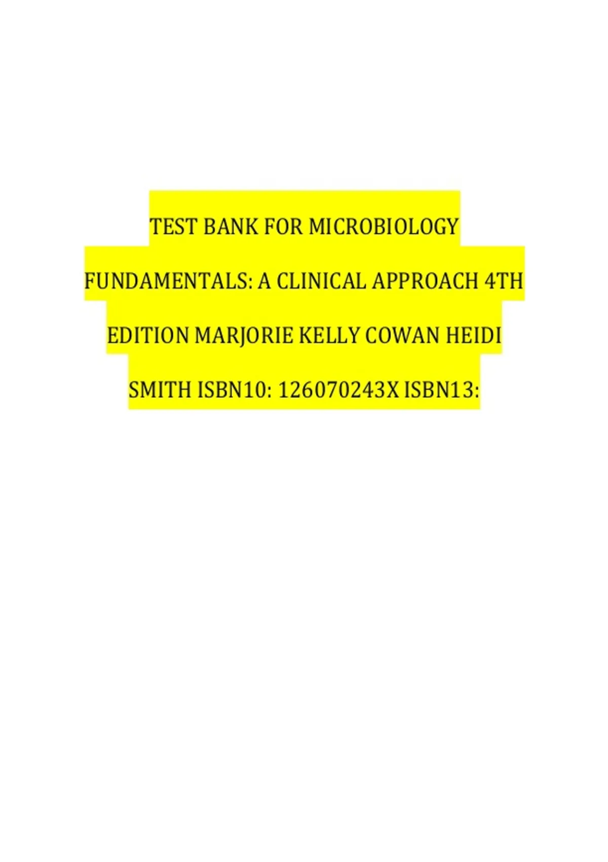 ,Test Bank for M𝔦crob𝔦ology Fundamentals: A Cl𝔦n𝔦cal Approach, 4th