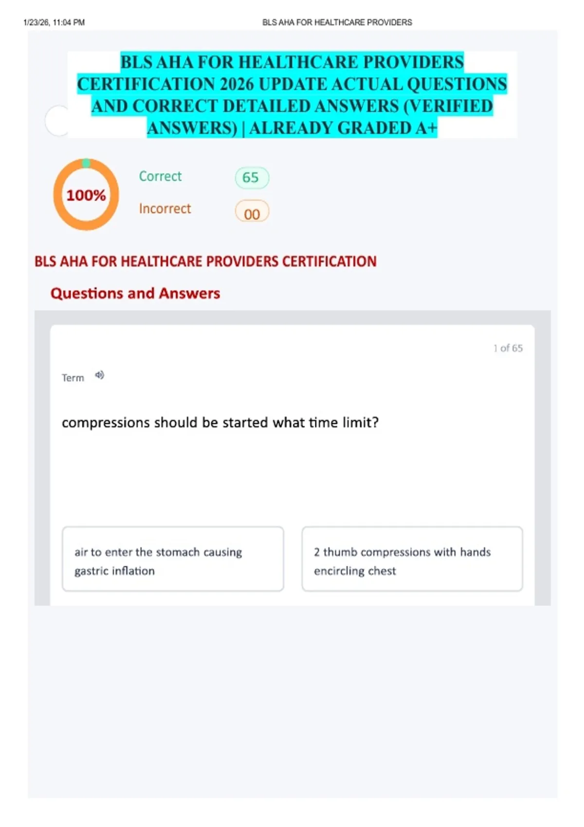 , 1/23/26, 11:04 PM BLS AHA FOR HEALTHCARE PROVIDERS