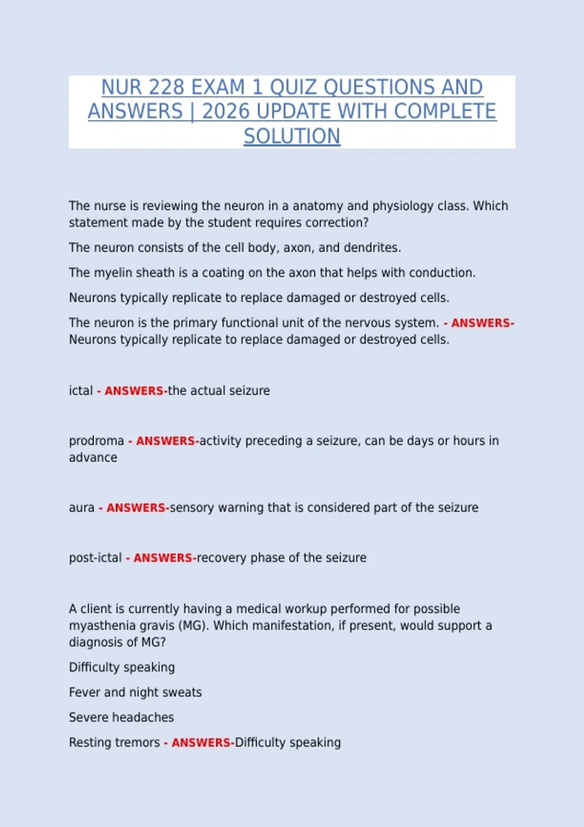 NUR 228 EXAM 1 QUIZ QUESTIONS AND