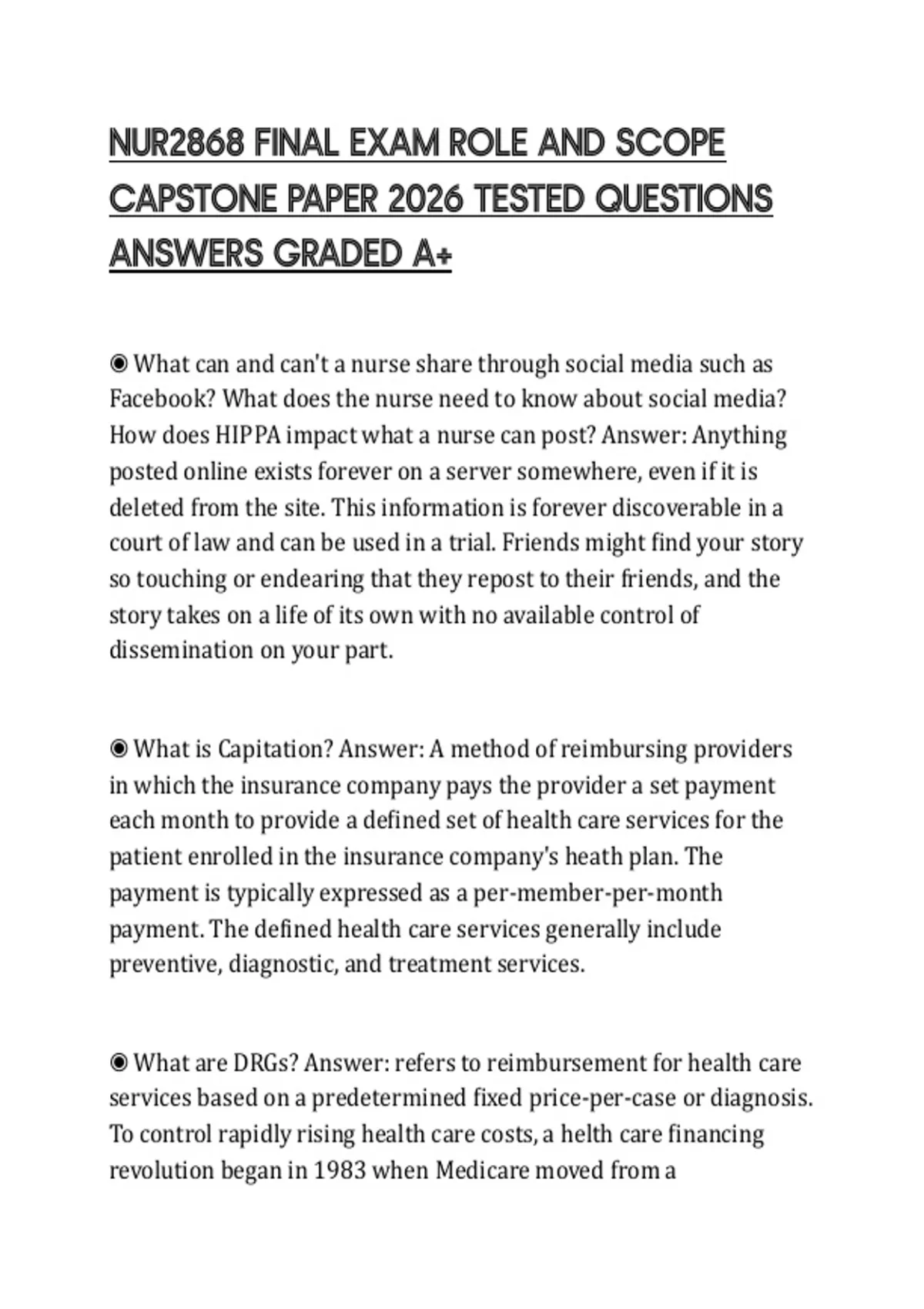 NUR2868 FINAL EXAM ROLE AND SCOPE CAPSTONE PAPER 2026 TESTED QUESTIONS ANSWERS GRADED A+