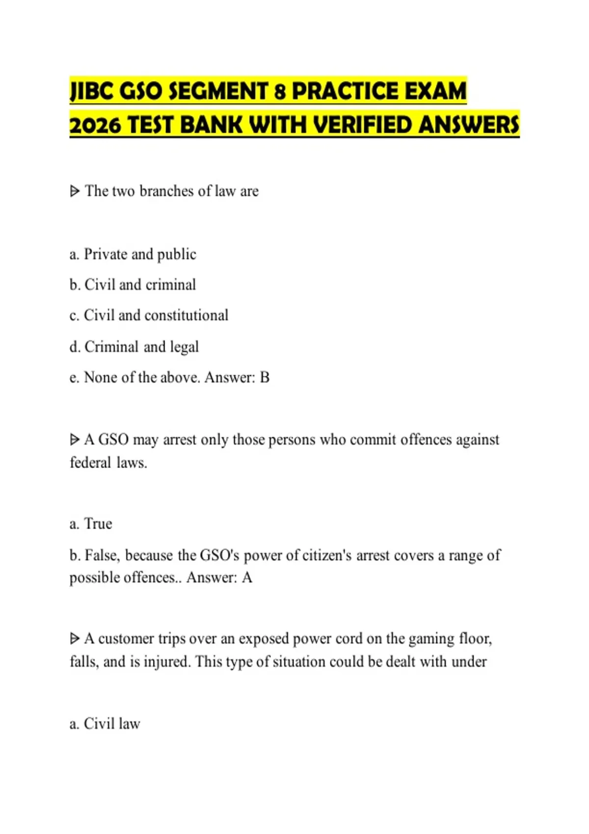 JIBC GSO SEGMENT 8 PRACTICE EXAM 2026 TEST BANK WITH VERIFIED ANSWERS