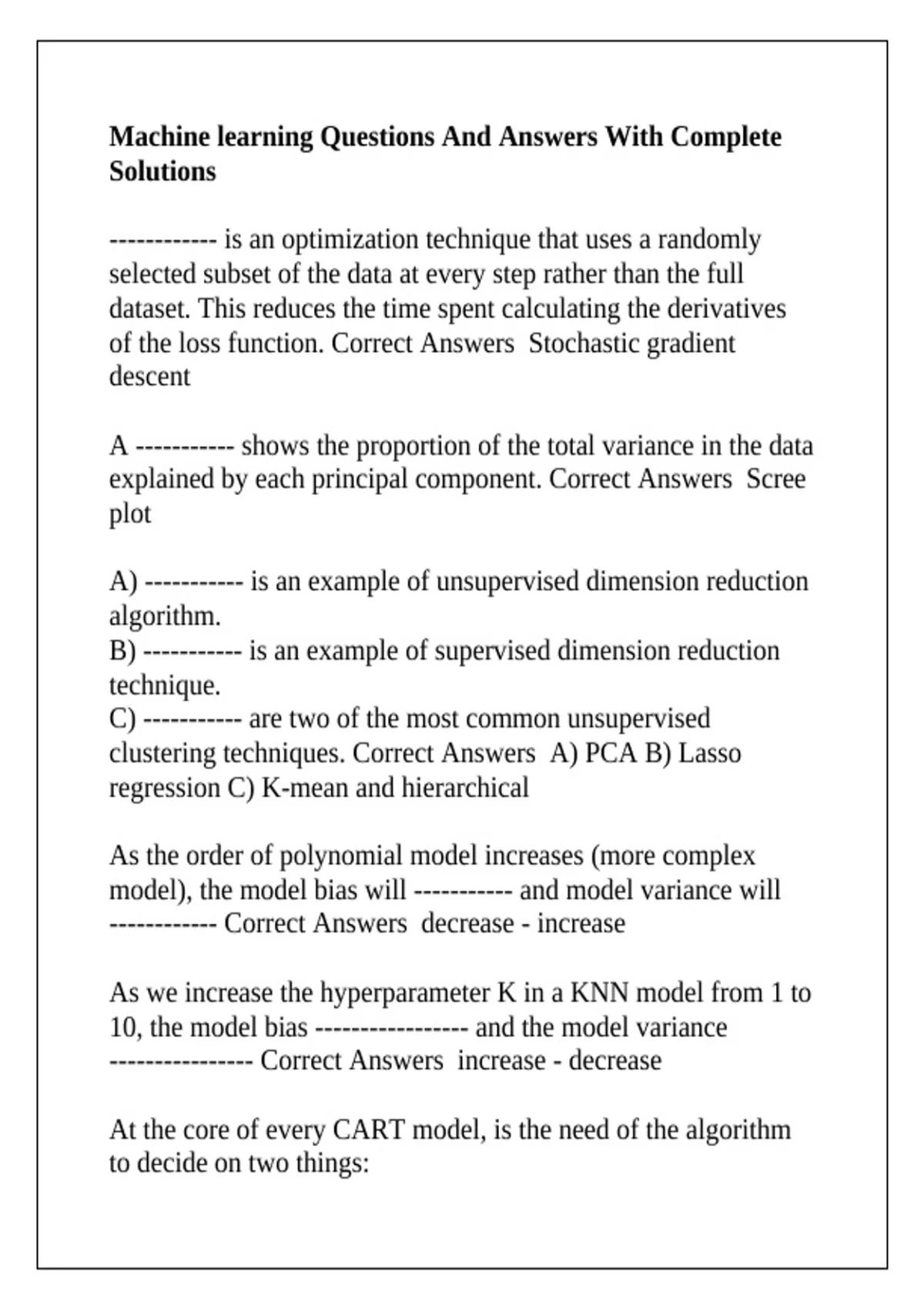 Machine learning Questions And Answers With Complete Solutions