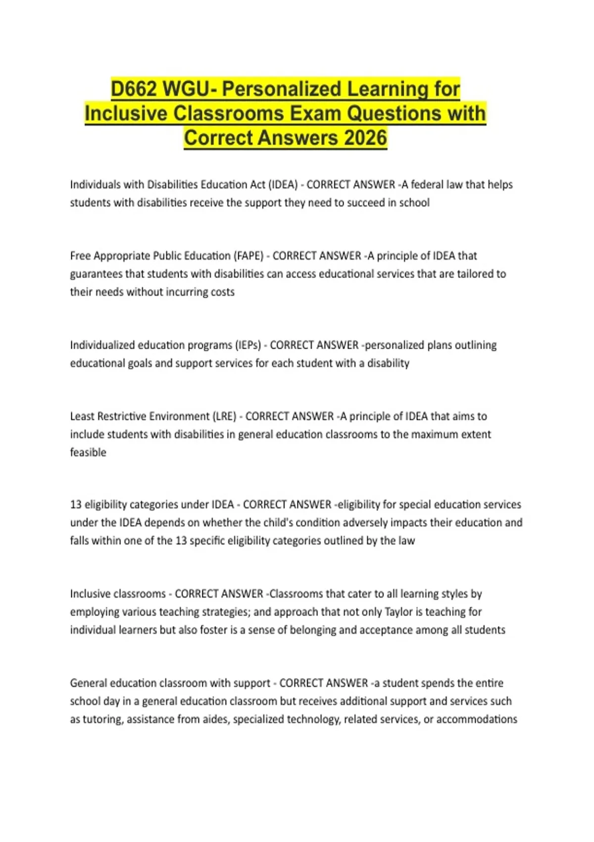 D662 WGU- Personalized Learning for Inclusive Classrooms Exam Questions with Correct Answers 2026