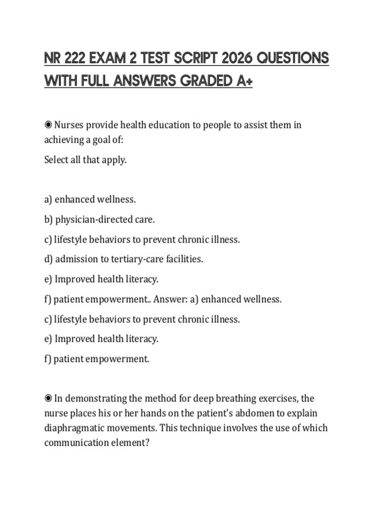 NR 222 EXAM 2 TEST SCRIPT 2026 QUESTIONS WITH FULL ANSWERS GRADED A+