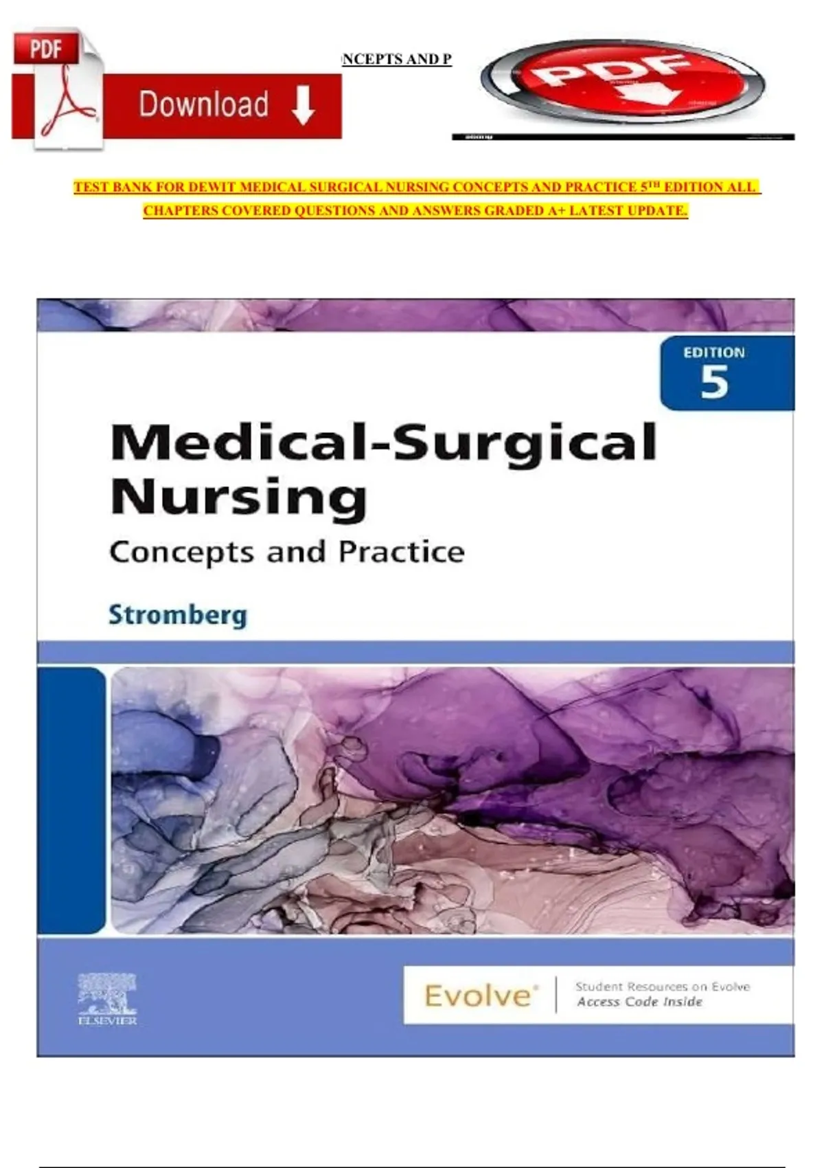 This document contains a complete test bank for Medical-Surgical Nursing: Concepts and Practice, 5th Edition by DeWit. It features questions and answers covering all chapters, ideal for exam preparation and thorough chapter review. The material is fully updated to the latest edition and includes A+ graded sample questions for comprehensive learning.