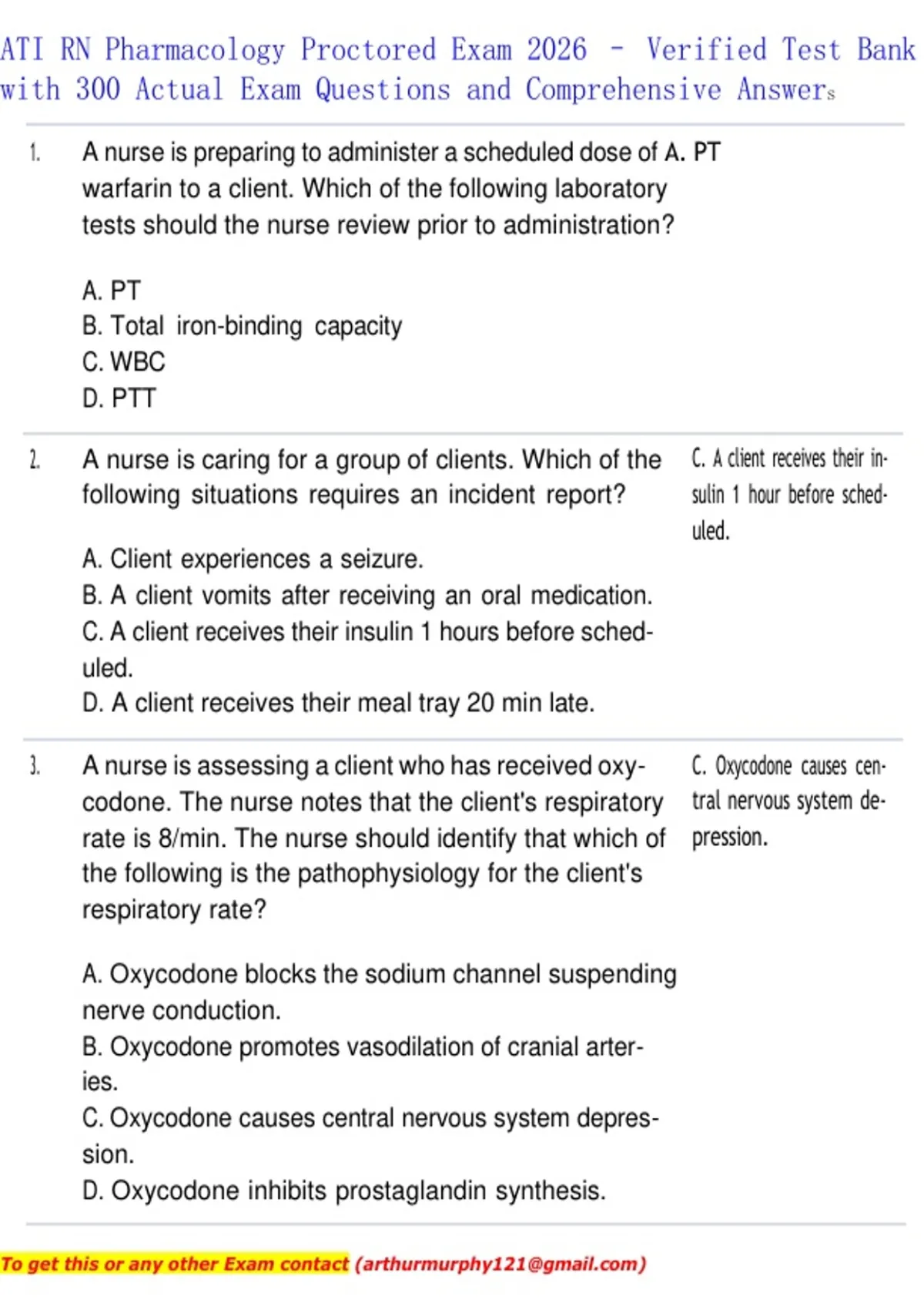 ,ATI RN Pharmacology Proctored Exam 2026 – Verified Test Bank