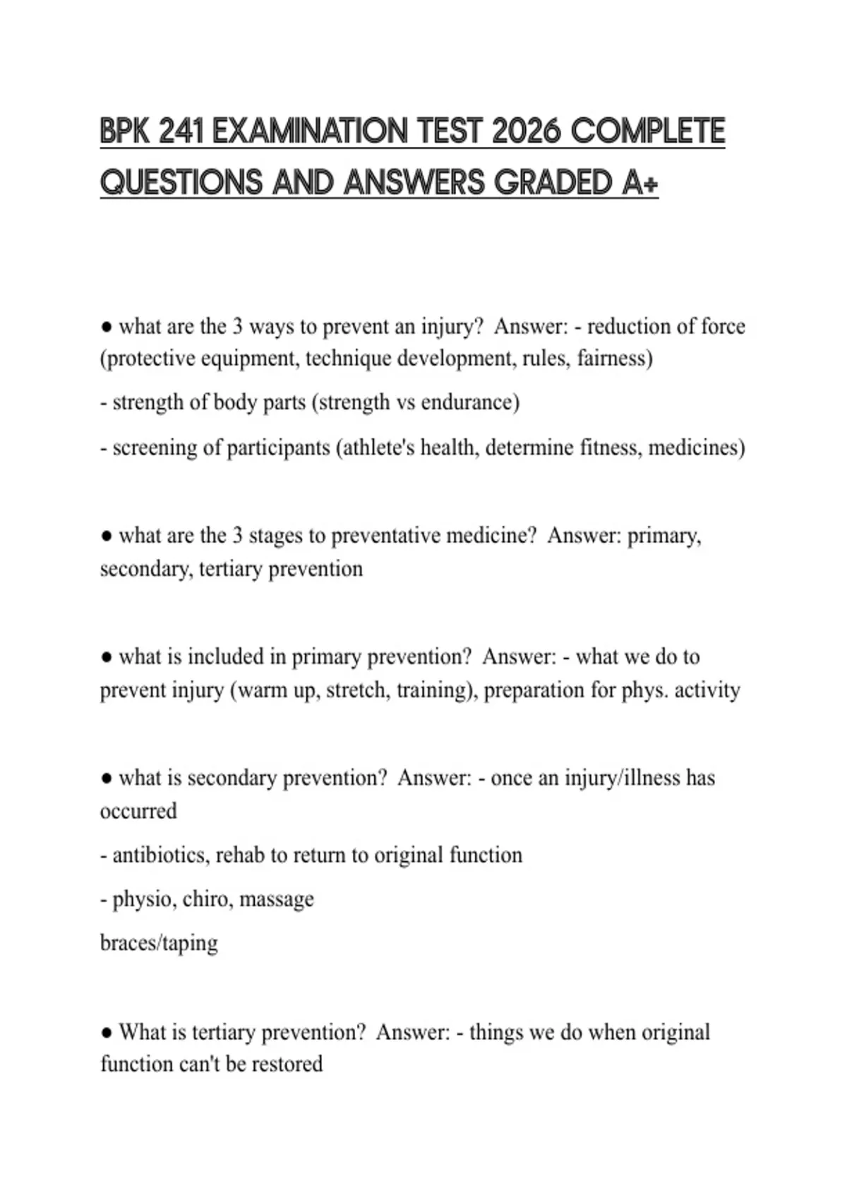 BPK 241 EXAMINATION TEST 2026 COMPLETE QUESTIONS AND ANSWERS GRADED A+