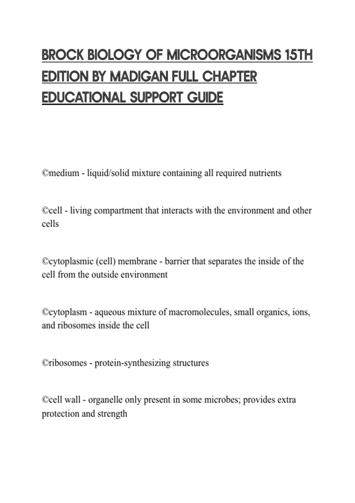 BROCK BIOLOGY OF MICROORGANISMS 15TH EDITION BY MADIGAN FULL CHAPTER EDUCATIONAL SUPPORT GUIDE