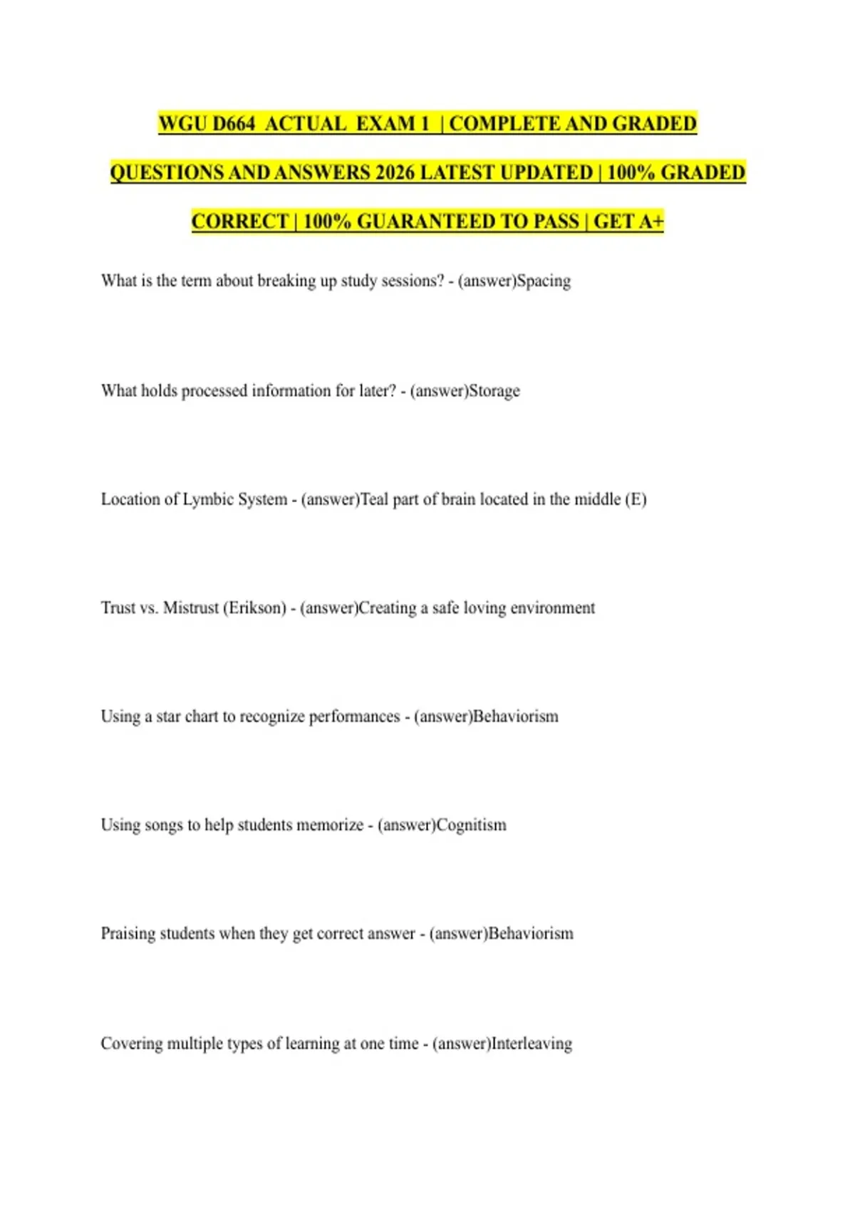 CORRECT | 100% GUARANTEED TO PASS | GET A+