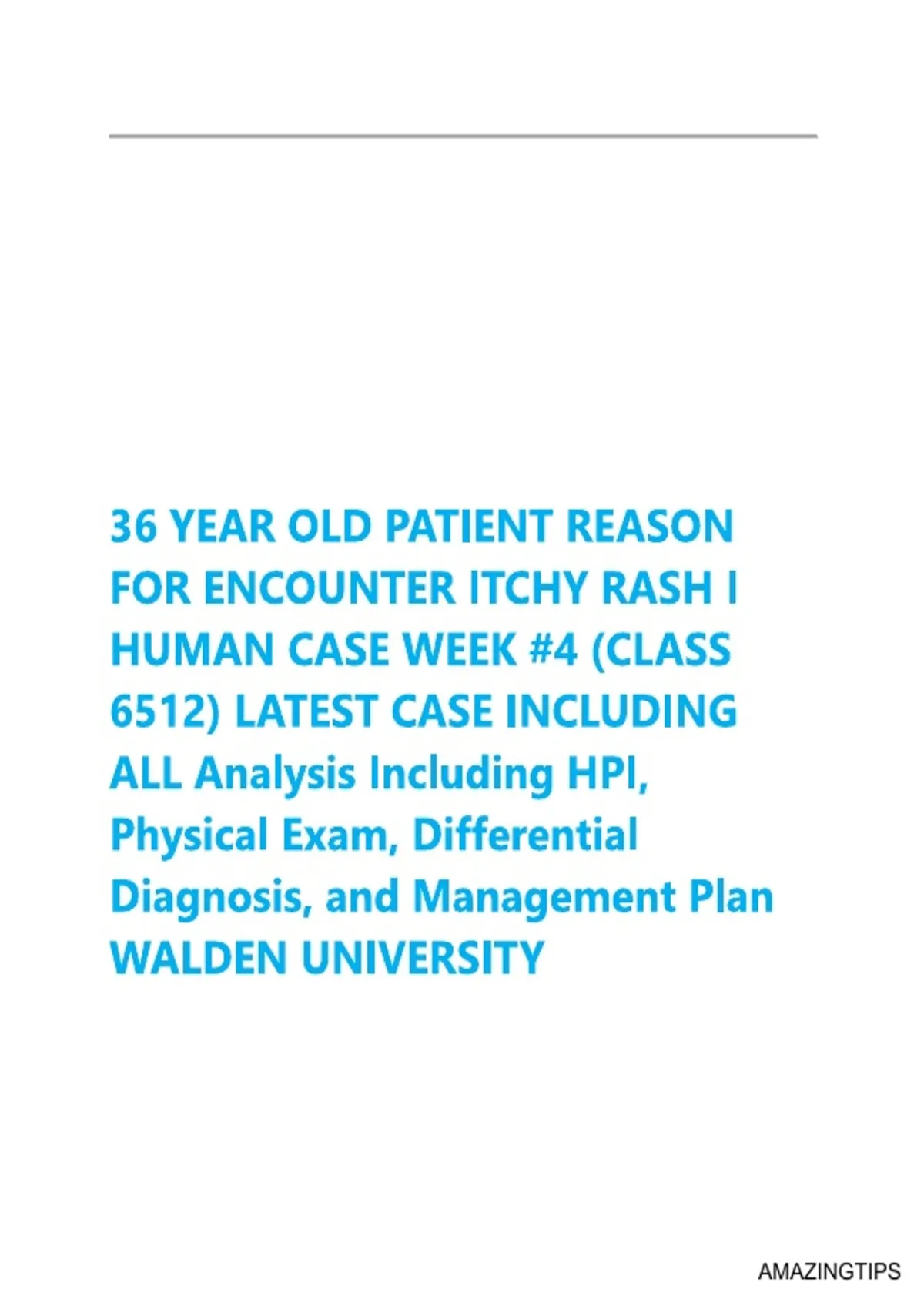 A 36 YEAR OLD FEMALE WITH ITCHY RASH I HUMAN CASE STUDY WEEK #2 6531 LATEST CASE STUDY ASSURED SUCCESS