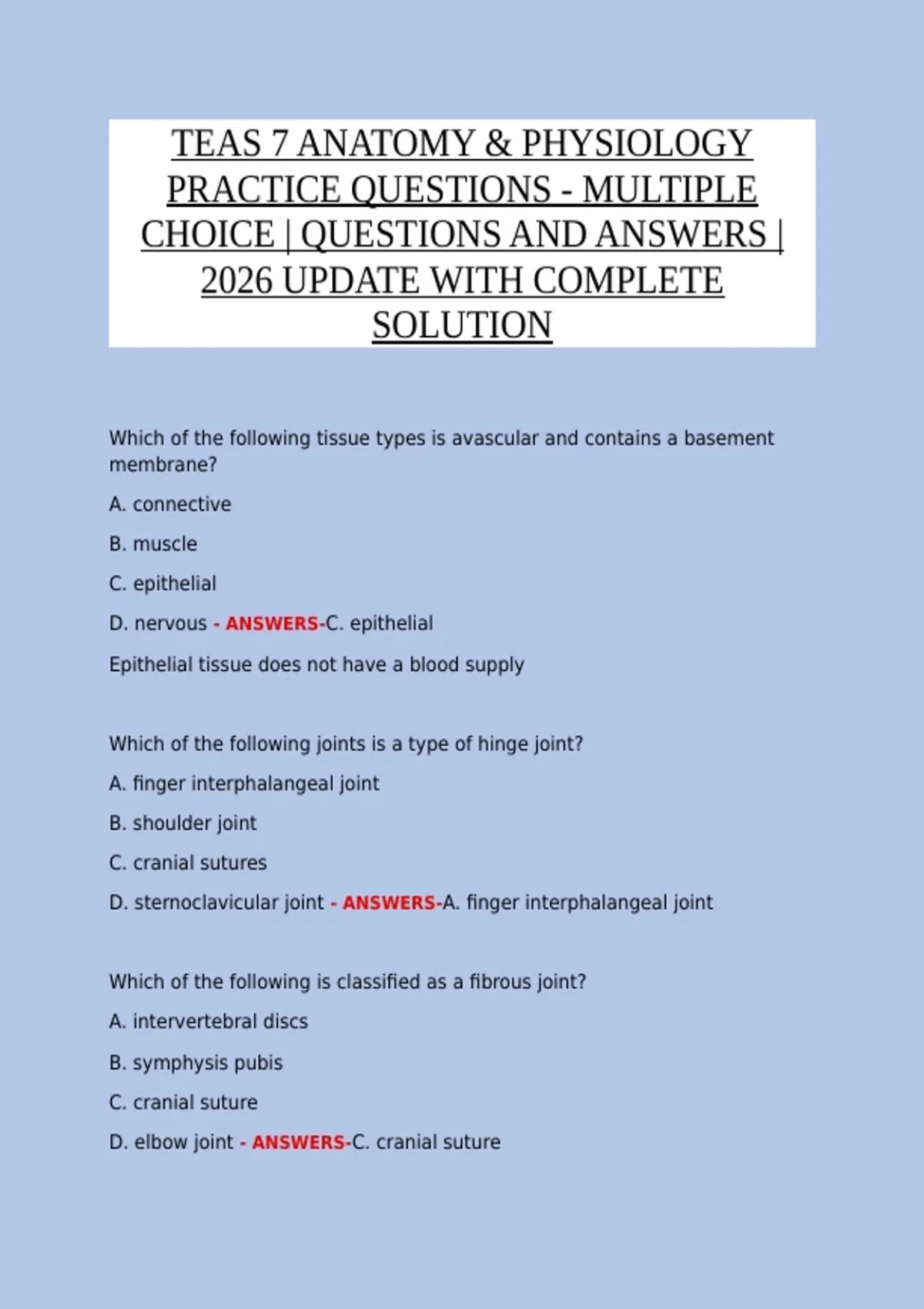 D. elbow joint - ANSWERS-C. cranial suture