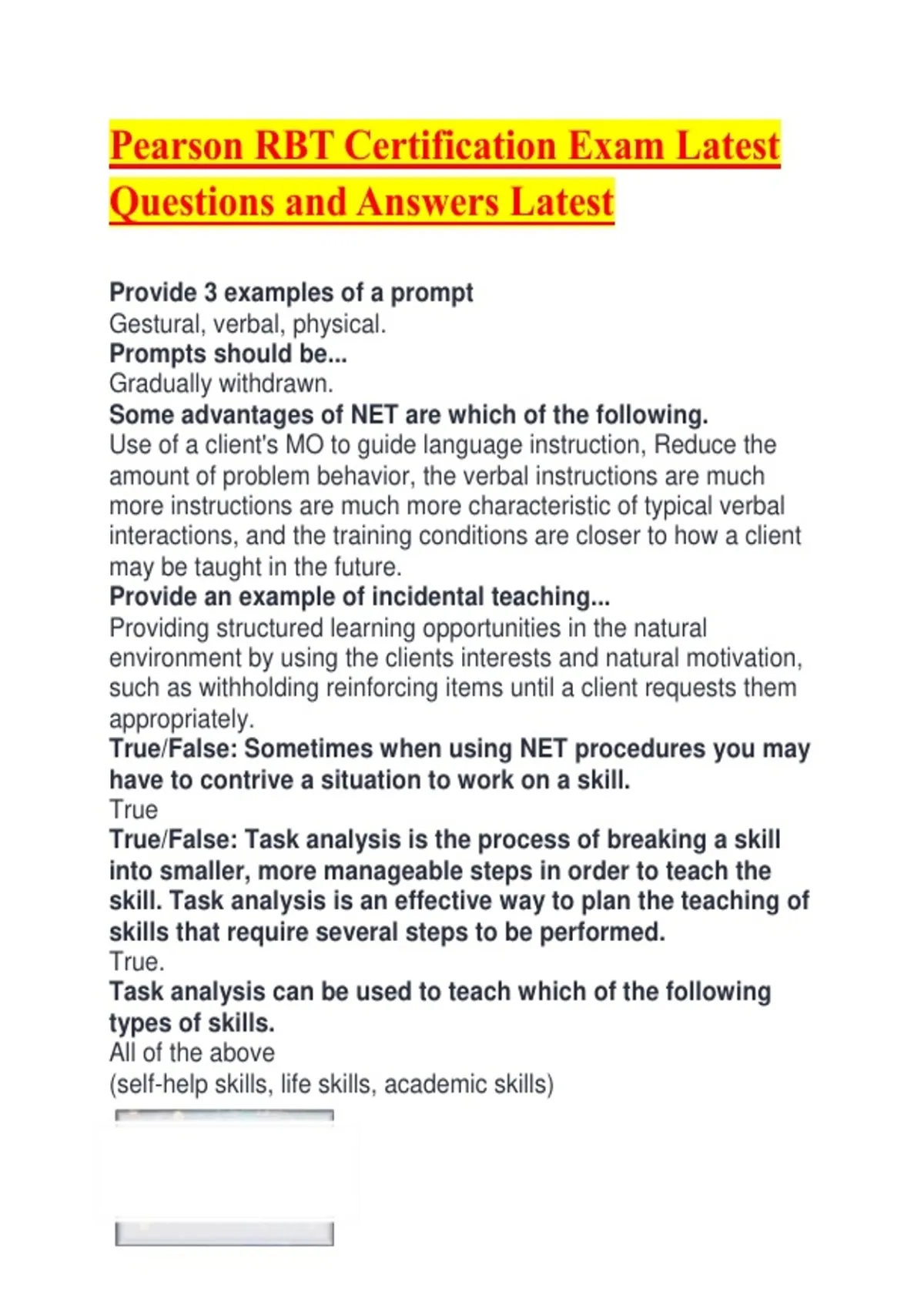 Pearson RBT Certification Exam Latest Questions and Answers Latest.