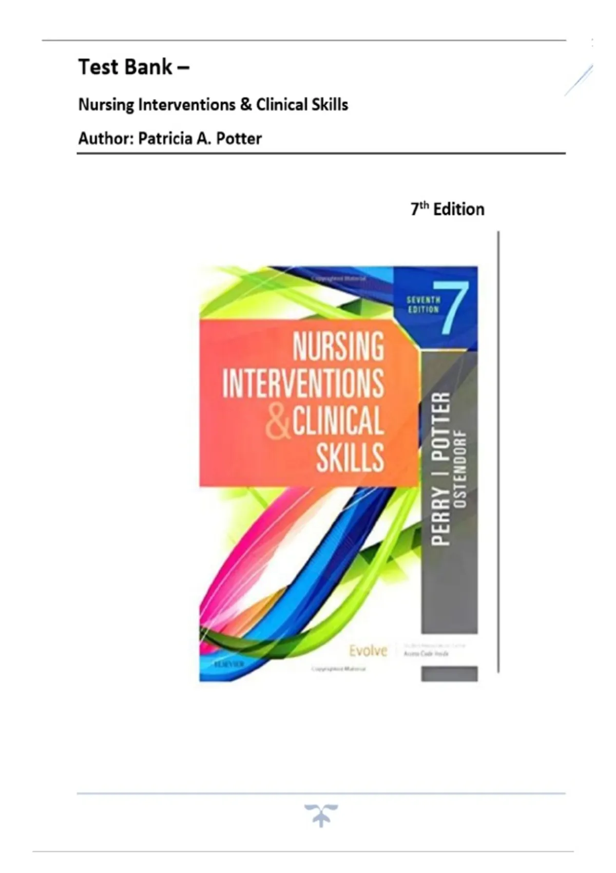 Test Bank For Nursing Interventions & Clinical Skills 7th Edition ( Patricia A. Potter, 2019) All Chapters 1-32| Latest Edition