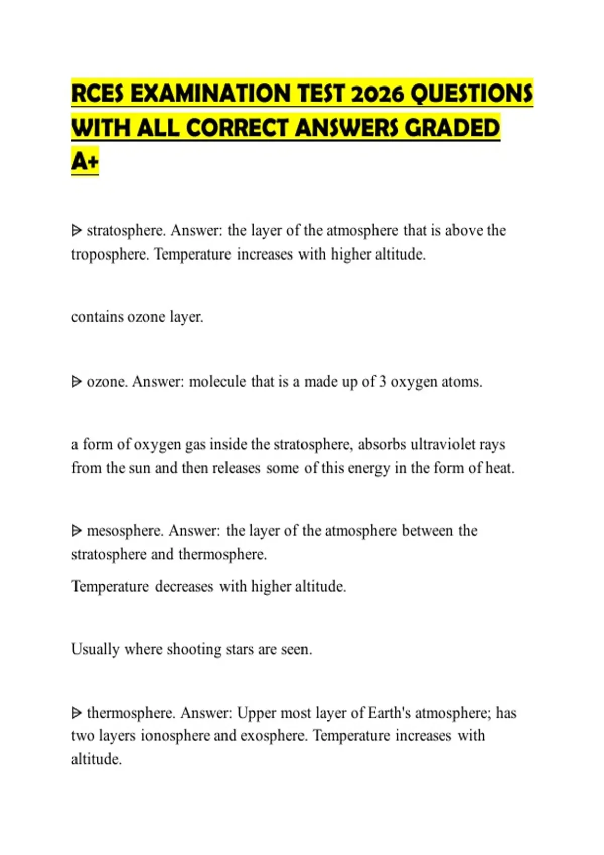 ⩥ stratosphere. Answer: the layer of the atmosphere that is above the