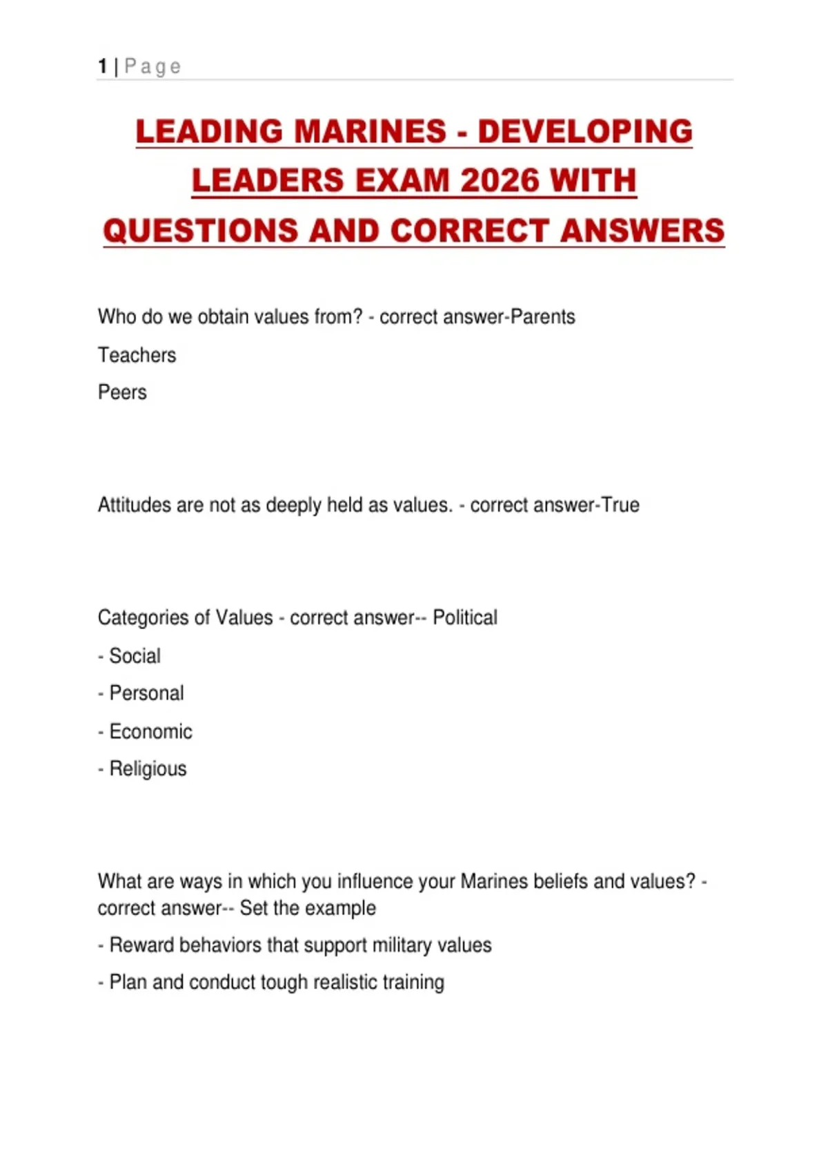 LEADING MARINES - DEVELOPING LEADERS EXAM 2026 WITH QUESTIONS AND CORRECT ANSWERS