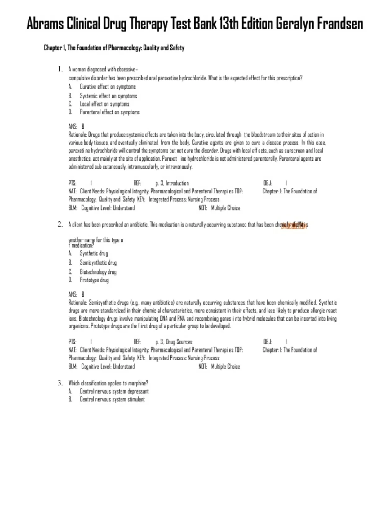 Abrams Clinical Drug Therapy Test Bank 13th Edition.pdf /2026/ 2027