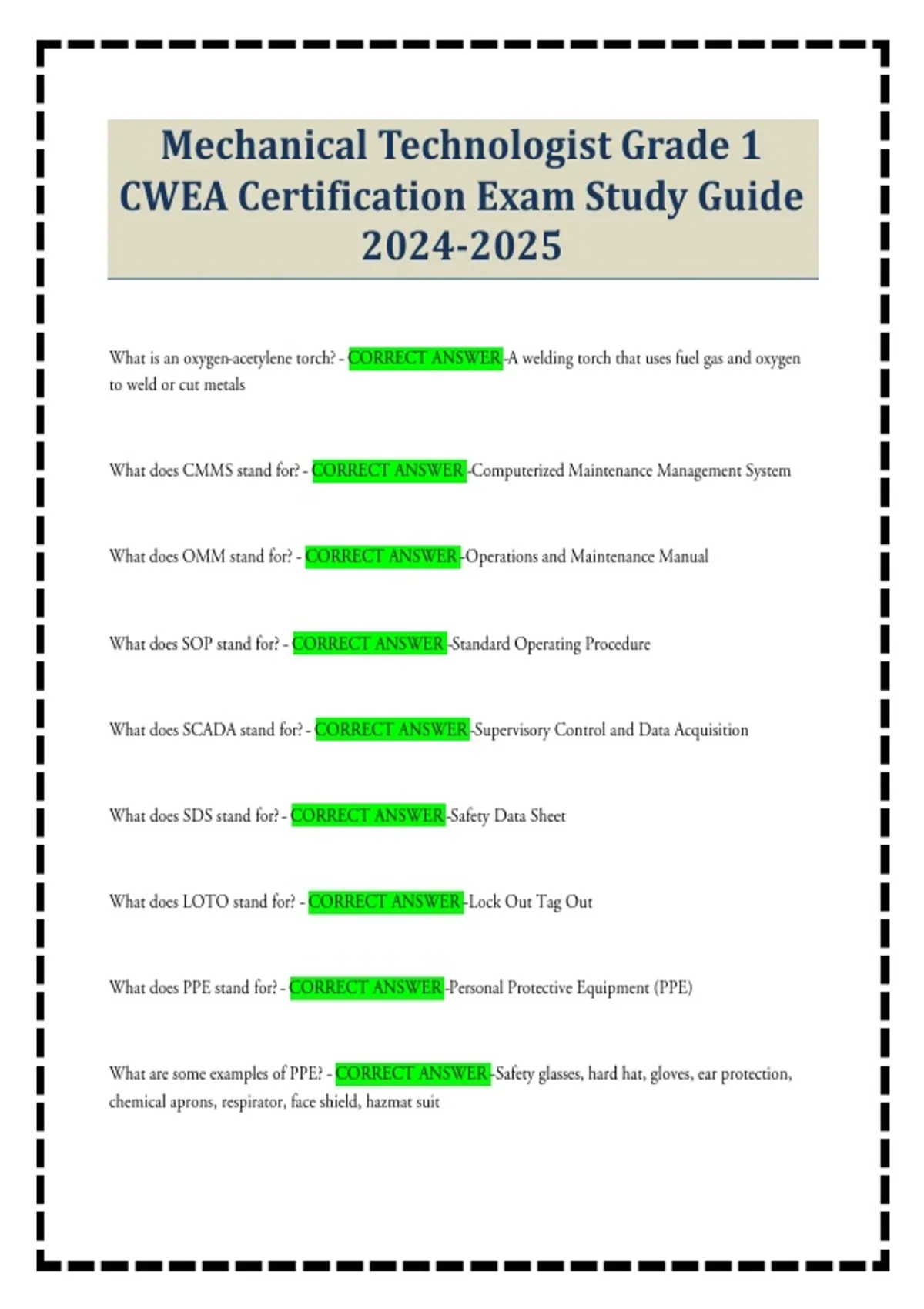 Mechanical Technologist Grade 1 CWEA Certification Exam Study Guide
