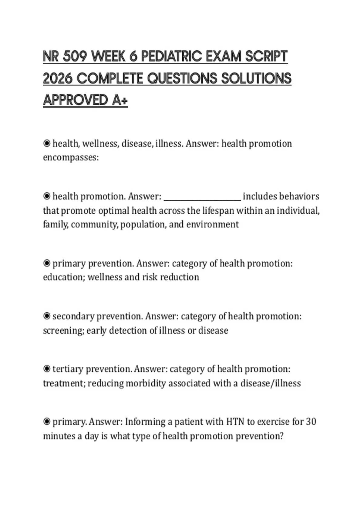 NR 509 WEEK 6 PEDIATRIC EXAM SCRIPT 2026 COMPLETE QUESTIONS SOLUTIONS APPROVED A+