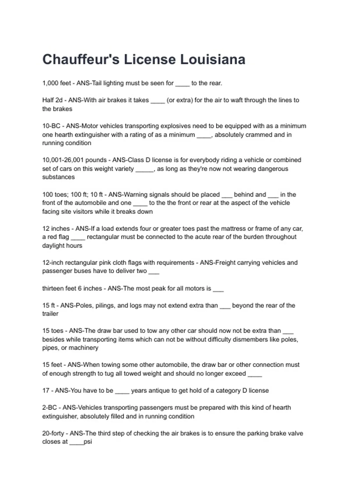 Chauffeur's License Louisiana NEWEST 2026/2027 ACTUAL EXAM COMPLETE QUESTIONS AND CORRECT DETAILED ANSWERS (VERIFIED ANSWERS) |ALREADY GRADED A+||BRAND NEW!!