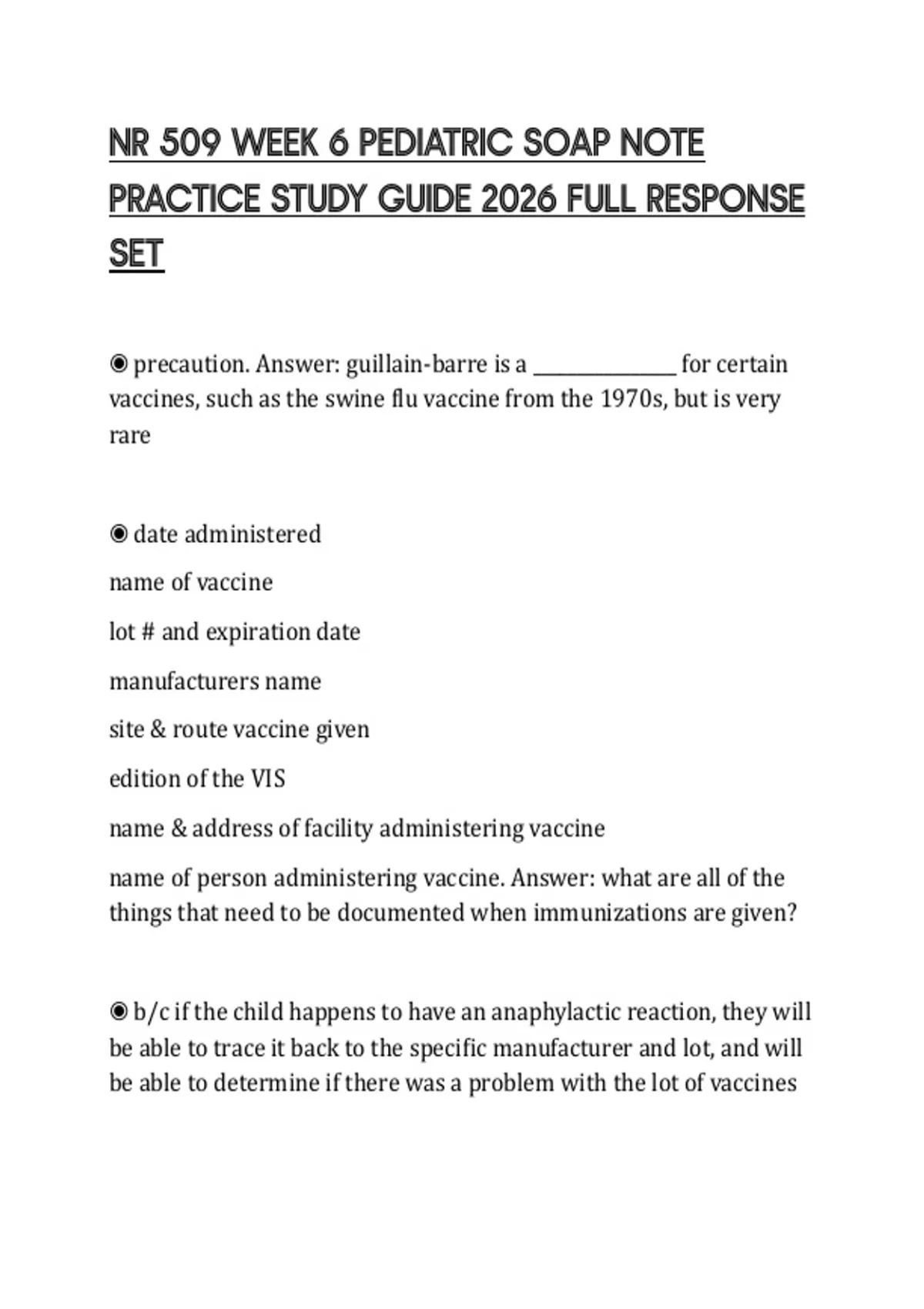 NR 509 WEEK 6 PEDIATRIC SOAP NOTE PRACTICE STUDY GUIDE 2026 FULL RESPONSE SET